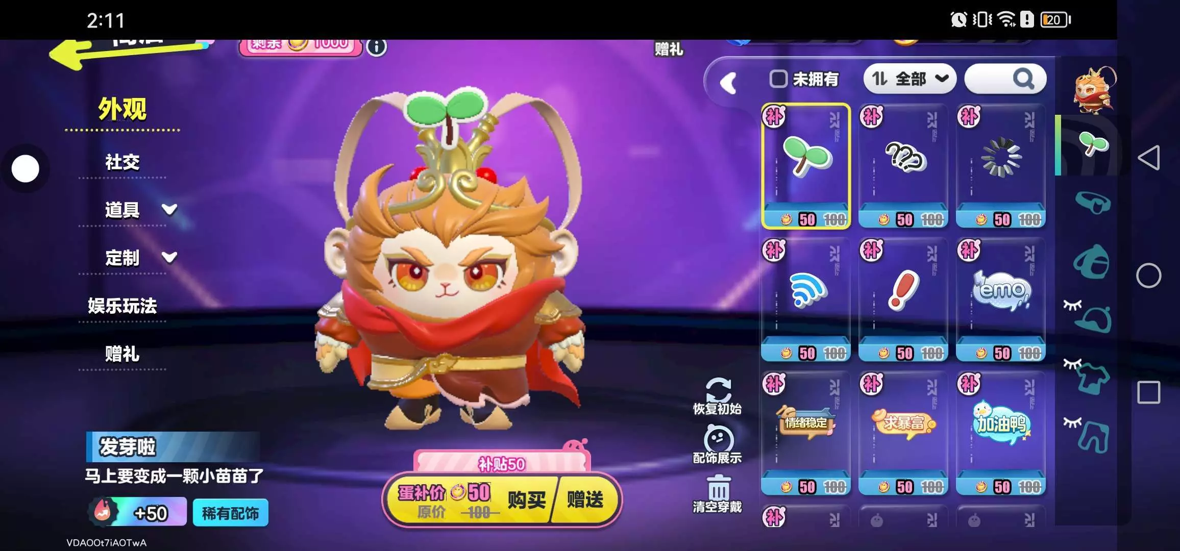 发芽啦:蛋币50+补贴额度50