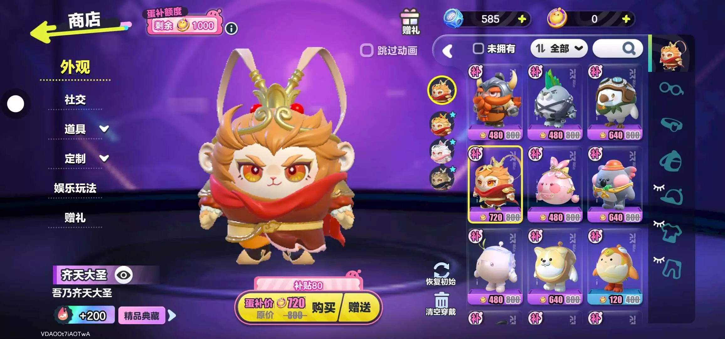 齐天大圣:蛋币720+补贴额度80