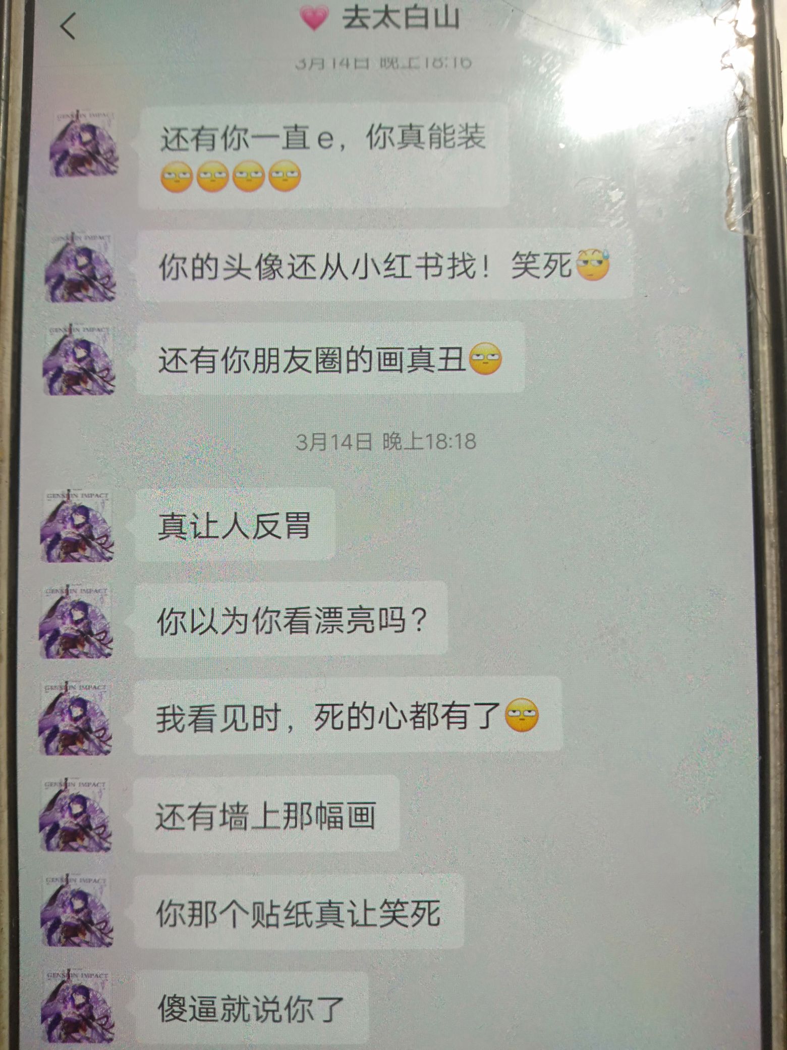 想做我情敌 回复 呵
