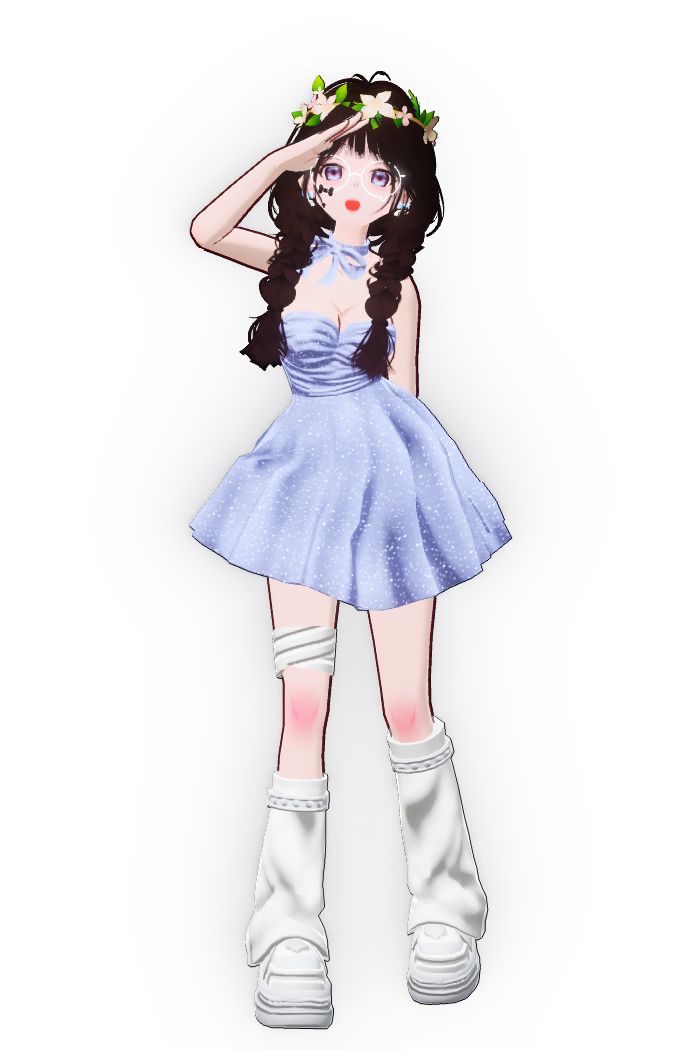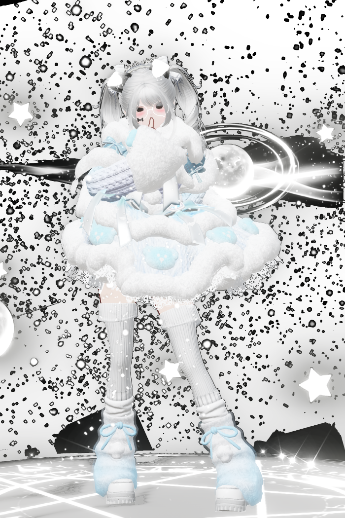 一头暗绯红头发,带着一丝神秘气息。穿着一身闪着“星星”的黑色裙子,裙边带有蕾丝,搭配一双毛茸茸的灰鞋子。既不失高雅,带有一些可爱的孩子气。像是从圣诞老人的礼物盒中逃出的公主