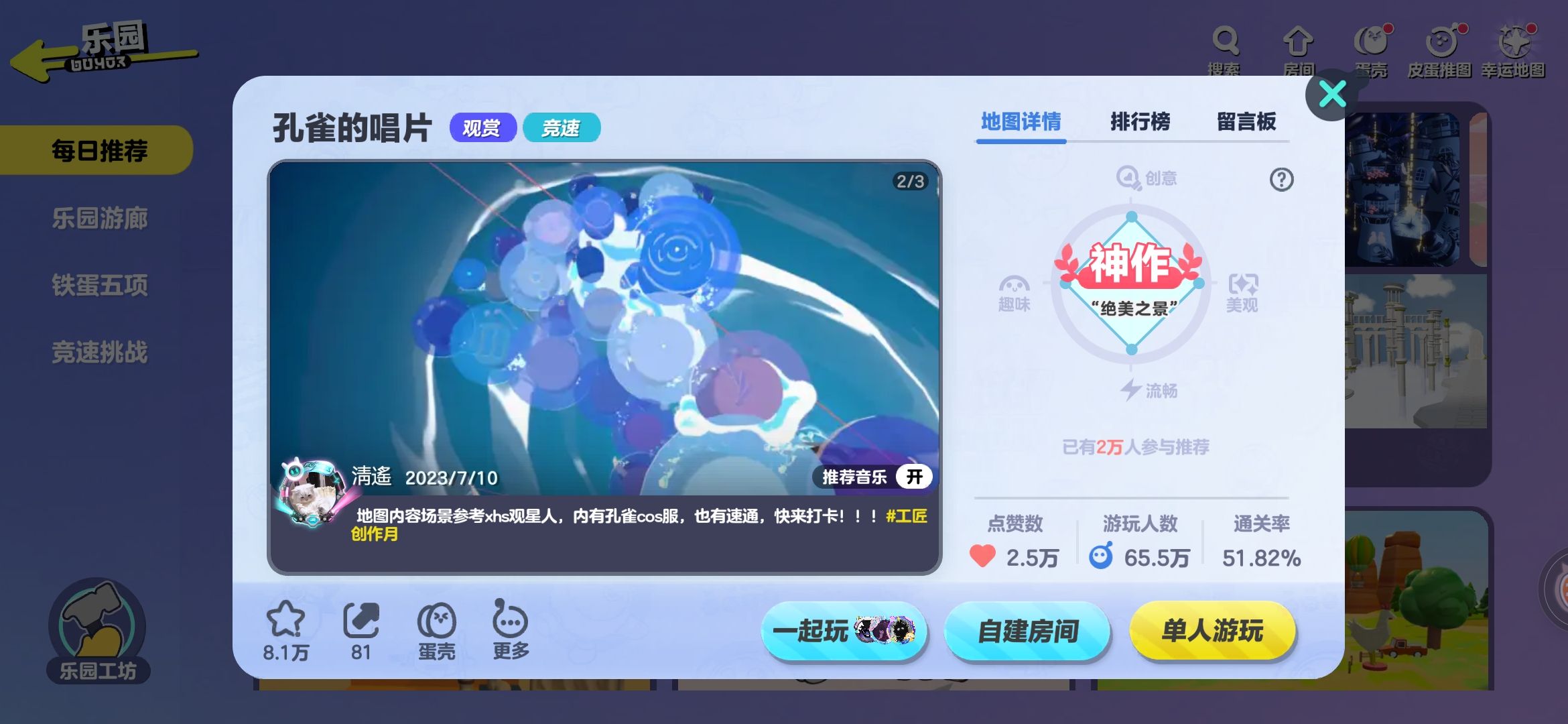 〖里面的孔雀🦚真的做的好精致,景色也十分美丽,看起来特别美观,而且关卡也很简单,路线可以自由选择,属于是既好玩又好看的观赏图,适合打卡⭐〗