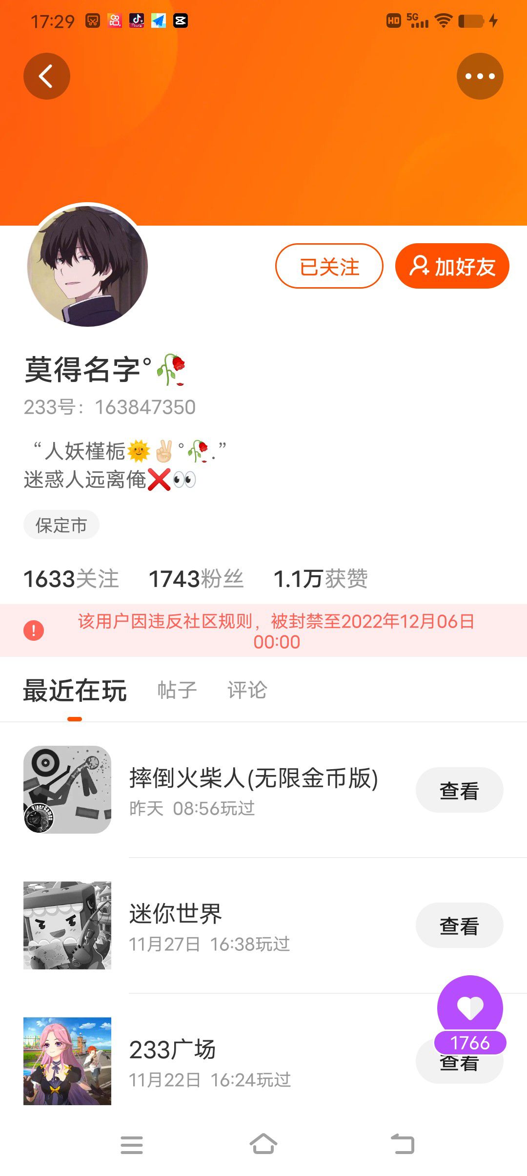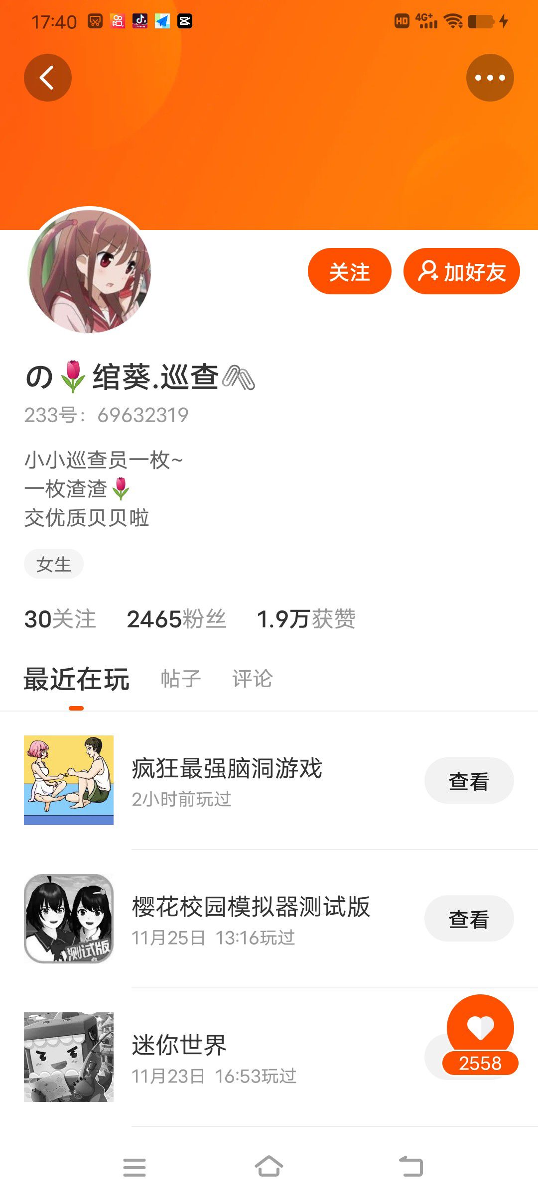 闺蜜跟我吵架了,之前就是没关注他,然后他就不关注我了,现在他有76分,而我只有71分有人可以关注一下我吗?