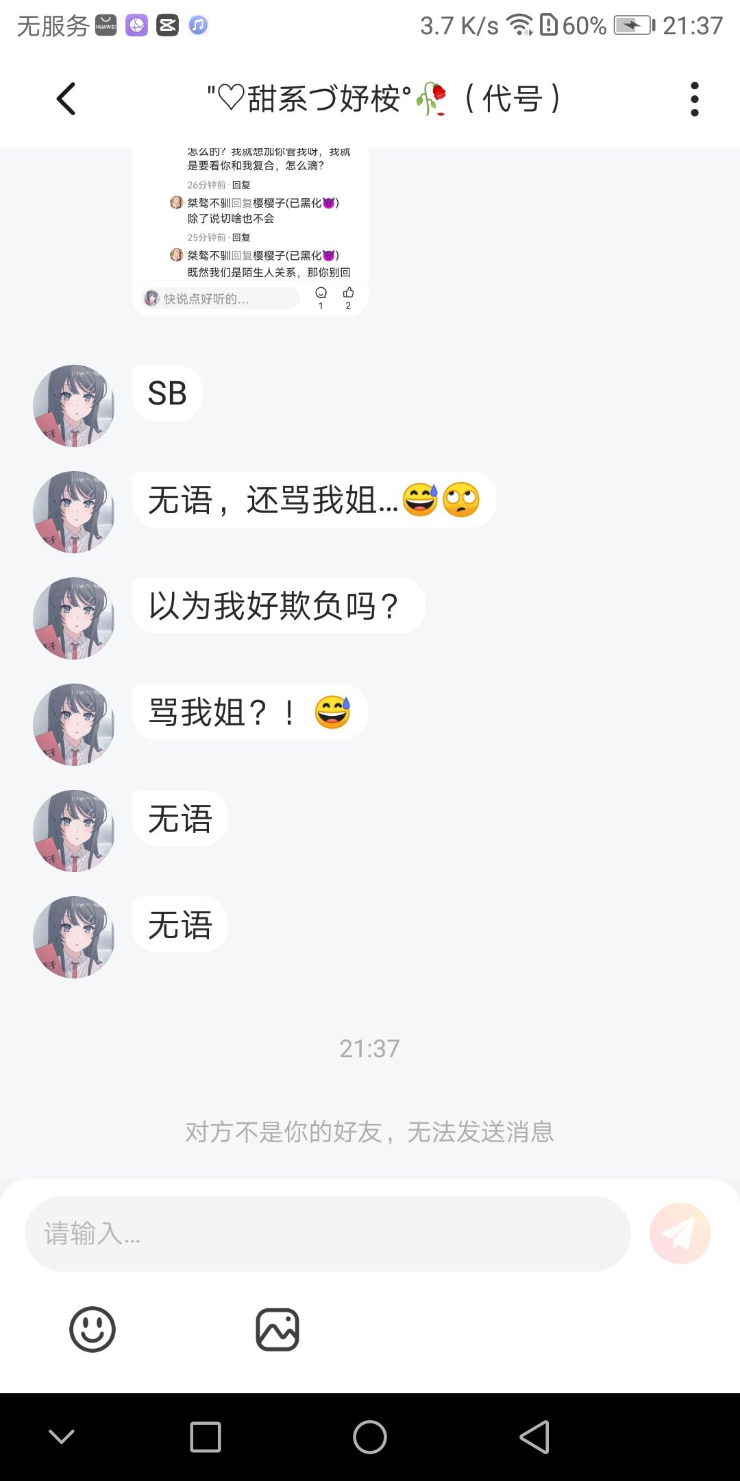 我又没有骂你姐,你姐还说我,我都忍着,你姐一直发,难道我说回去都有错?还骂我,真无语