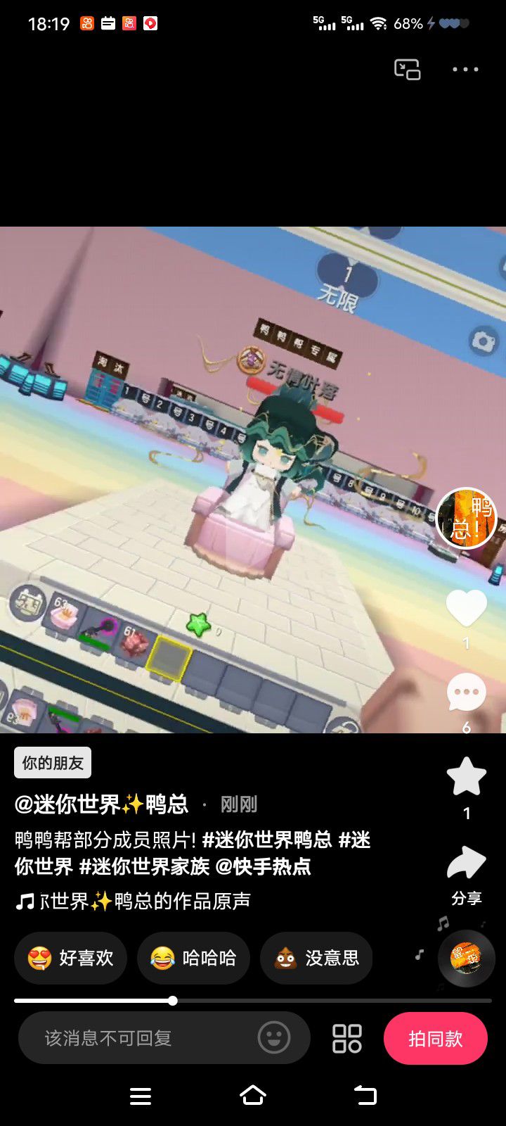 有人玩快手吗我发快手的迷你世界被限流了找个人来当个演员,不过分吧求帮助