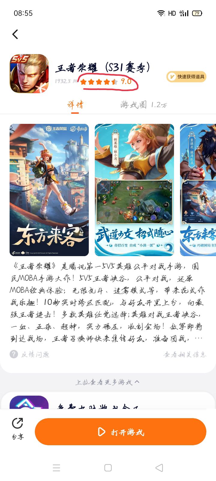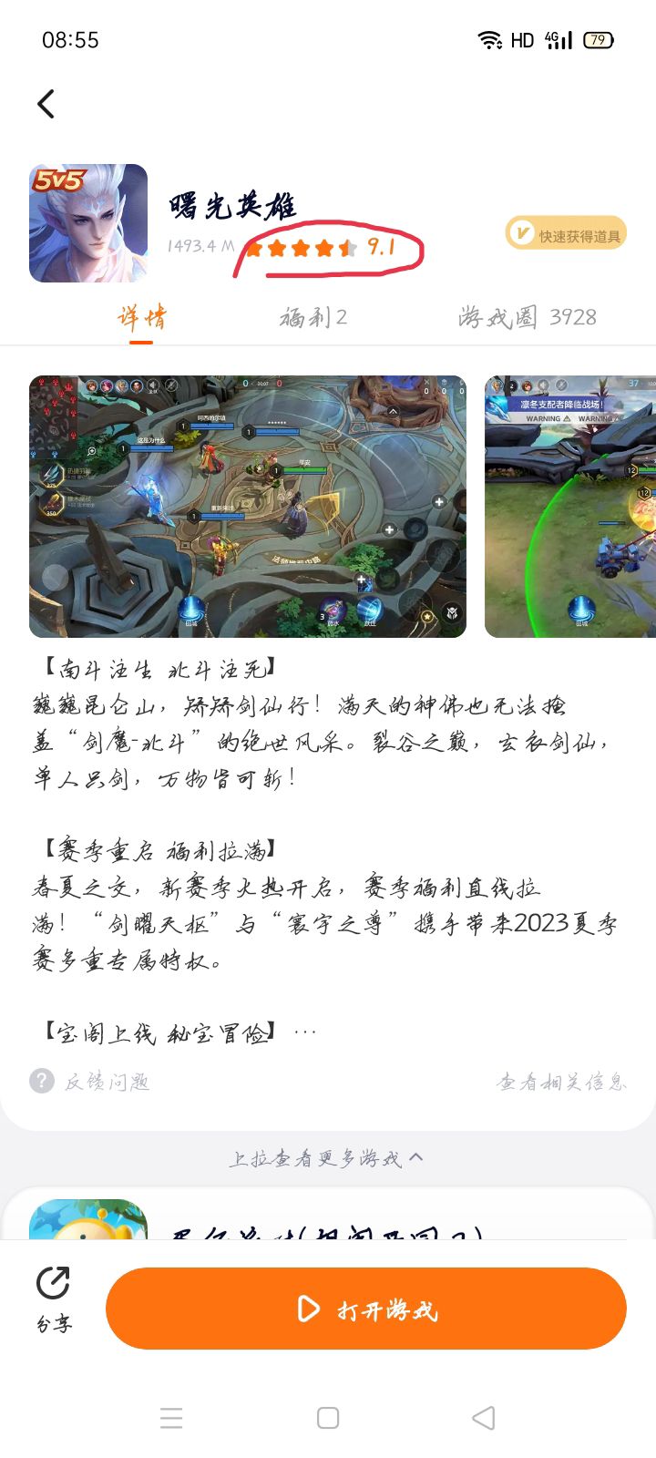 看清楚了吗?曙光的评分一直以来都比王者高,虽然我也玩王者,但是实在看不下去了,你们都说它抄袭,可王者发话了吗?连正主都还没说话,你们在这说什么?就算是,那也证明曙光做工比王者精细,你们爱玩就玩,不玩就别在这乱说,王者和曙光哪里一样了,那个5V5游戏没有技能、地图、英雄,真的很想笑。
