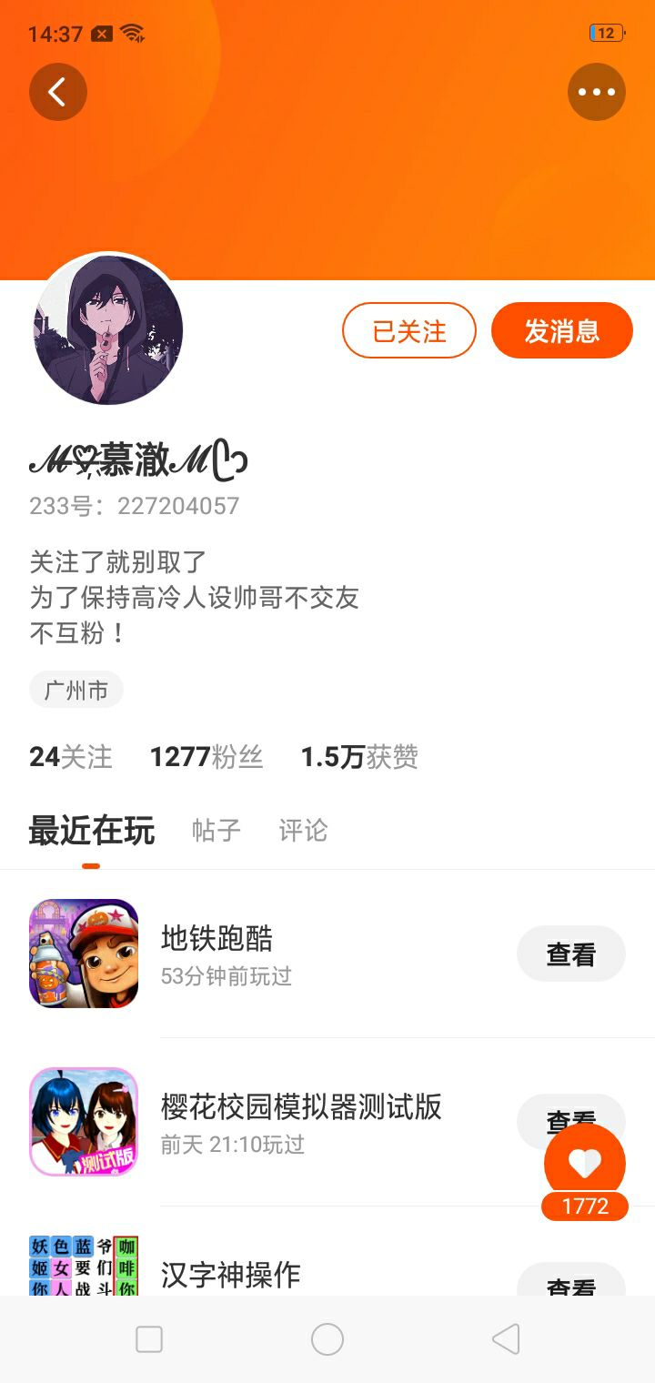 家人我摊牌了。其实我还有个大号。那个号有1000多粉丝。家人们你们别不信。这是事实。别问我为什么这个号粉丝这么少,因为这个号是前几天刚开的。那个号我已经给我妹玩了。大家别不信。
