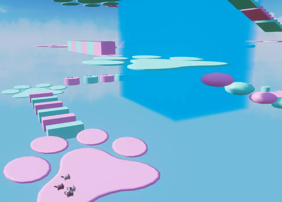 粉蓝.瀑布.小猫