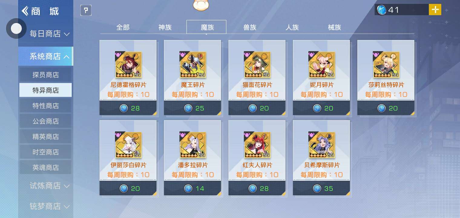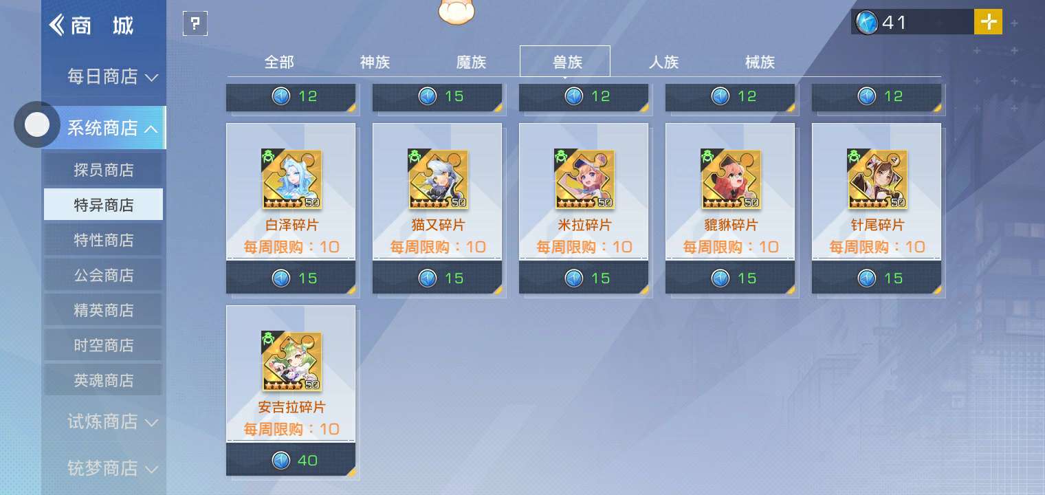 你们说我要哪个呢?神族最后三个没有,魔族和兽族最后一个没有,械族最后两个没有,人族它卖的我全有