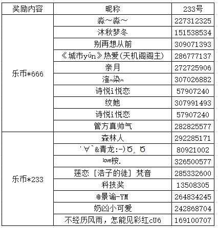 4.三等奖(8人):500乐币、换头像资格*1、233乐园会员7天