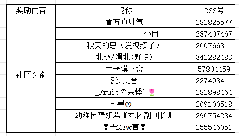 2、参与奖:从未入选的称号中随机抽取8位村长送出乐币*233 3、锦鲤奖:随机抽取10名送出社区头衔