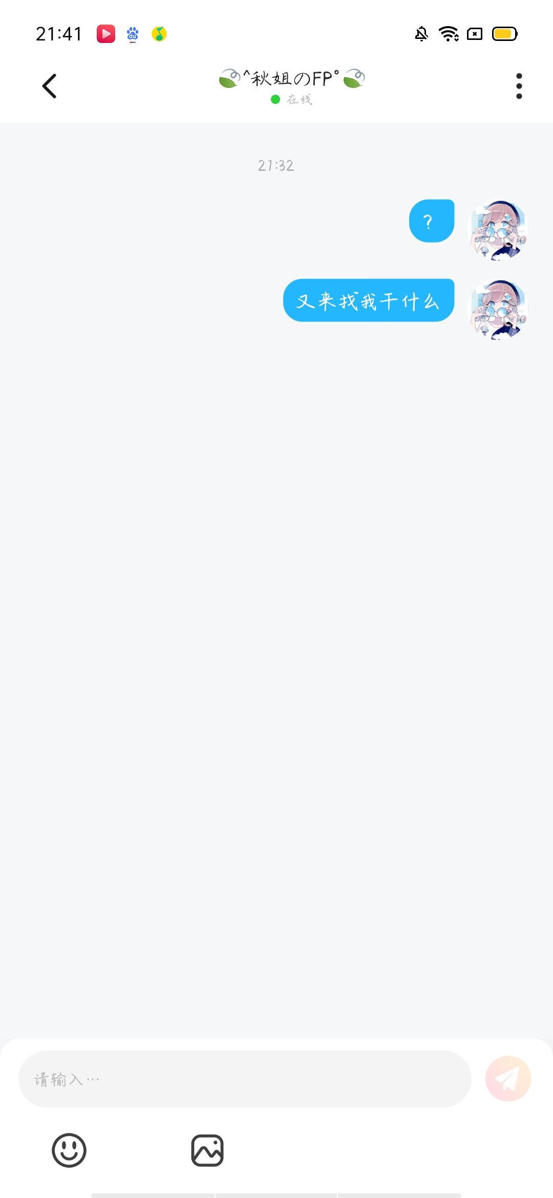 emmmm哈喽,我是淡游的千,退了拜拜,5月30号回归,还有,打卡的ff们注意,打卡规定改了,主页有,以前打卡几天回几个,现在2天回1个,打卡的可以继续打,30号回来给你补上,拜拜