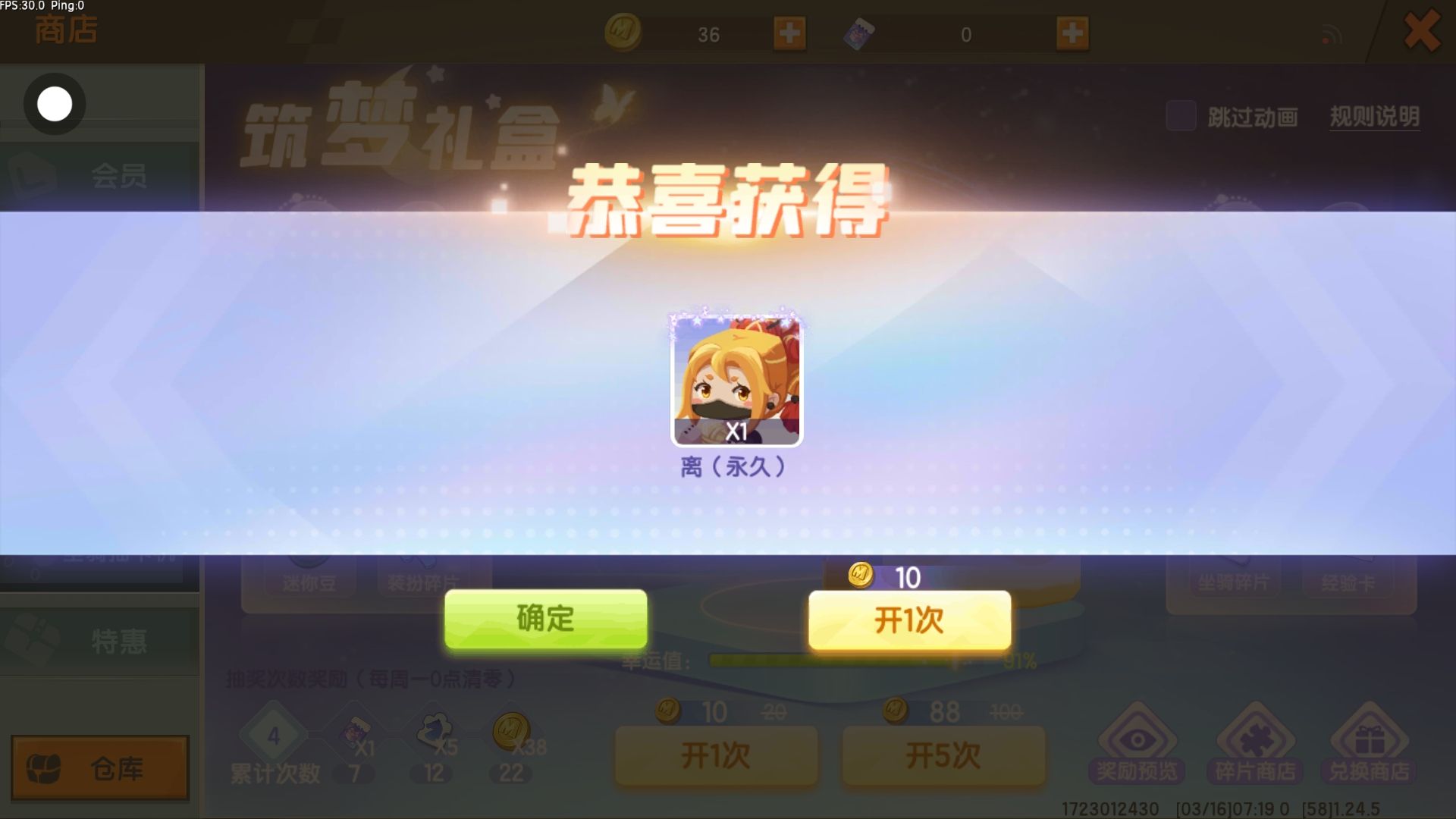 开心开心刚刚送了我一个现在自己抽到了!