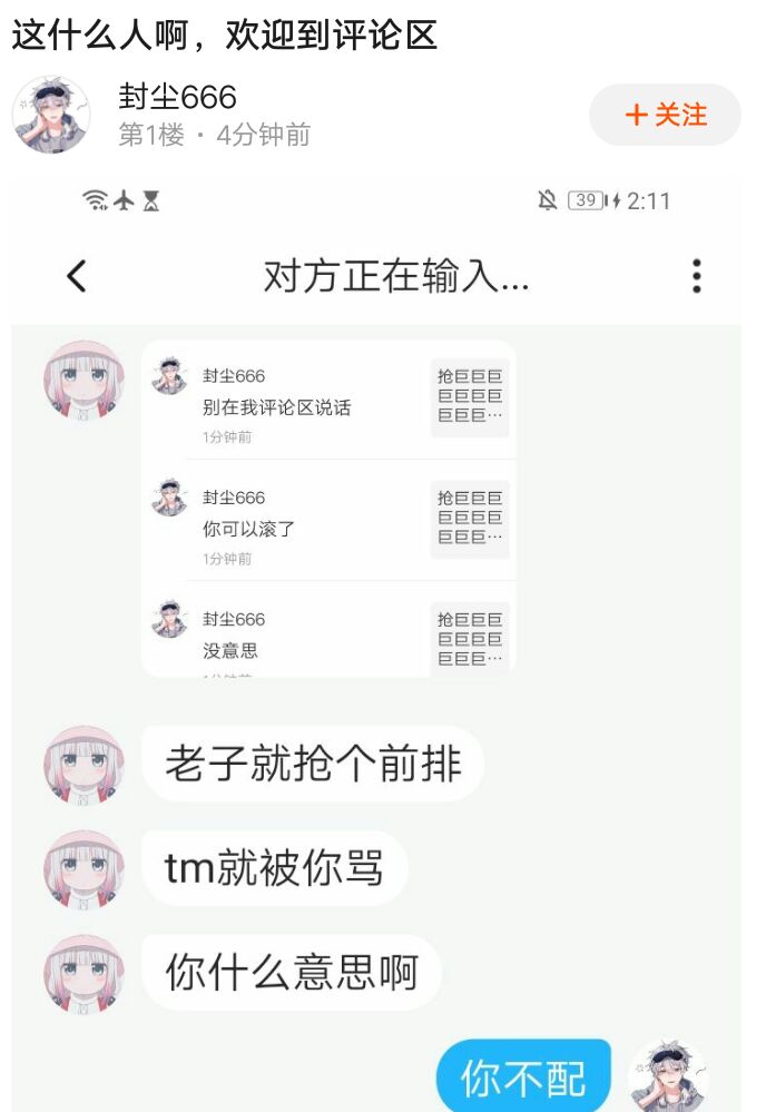 额😓无语了,1.你不是前排别睁眼说瞎话2.不要在我评论区里打广告3.我就说了2句你就开始🐴我,你什么意思?大家帮我举bao一下谢谢