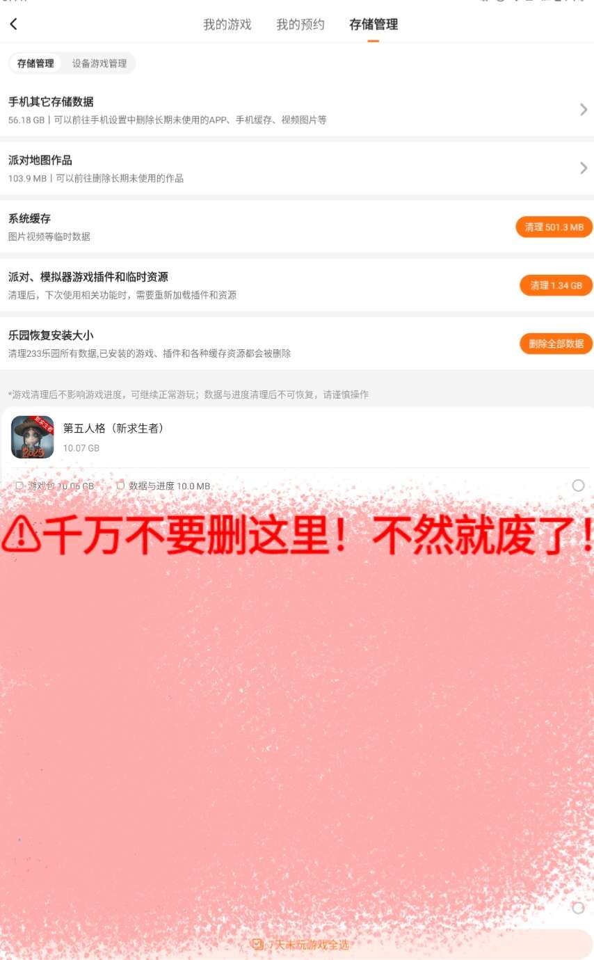 注意⚠︎:千万不要在“储存管理”删除游戏数据‼️不然非常有可能导至帐号丢失‼️