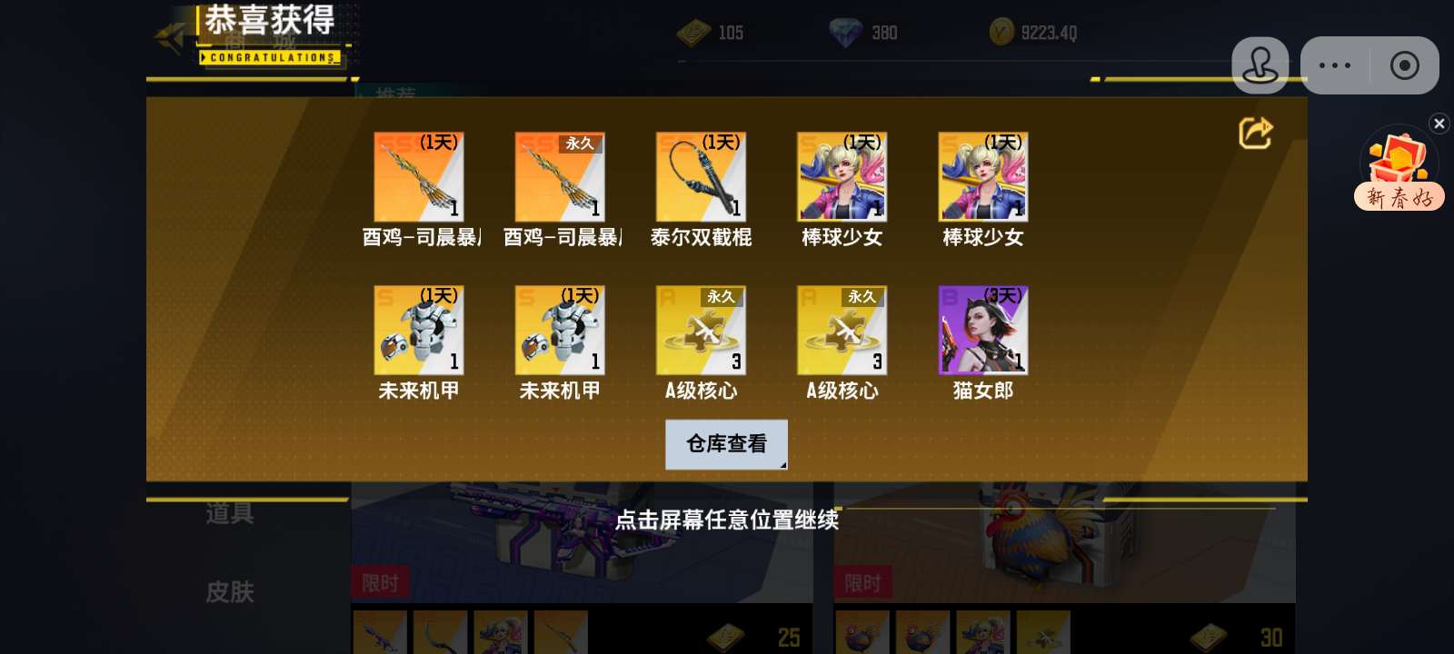 288点券大号只中了几个碎片和a核,小号就中了几个泰尔宝箱。(无语……)