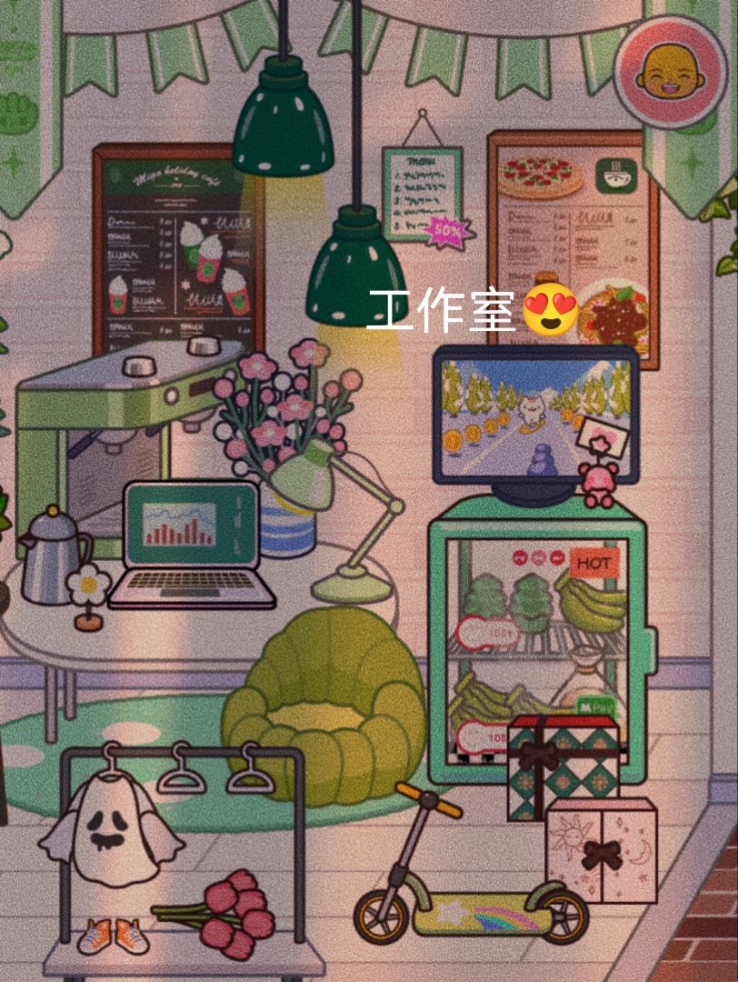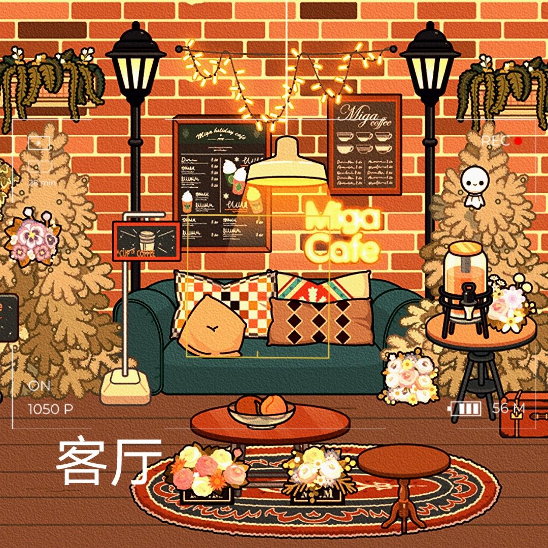 这两张图是一间房。粉色双层别墅一楼
