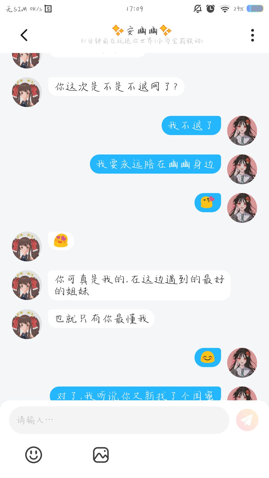 知道我为什么不想退网了吗?因为我想我的姐妹了,在此也祝贺她,跟她闺蜜99