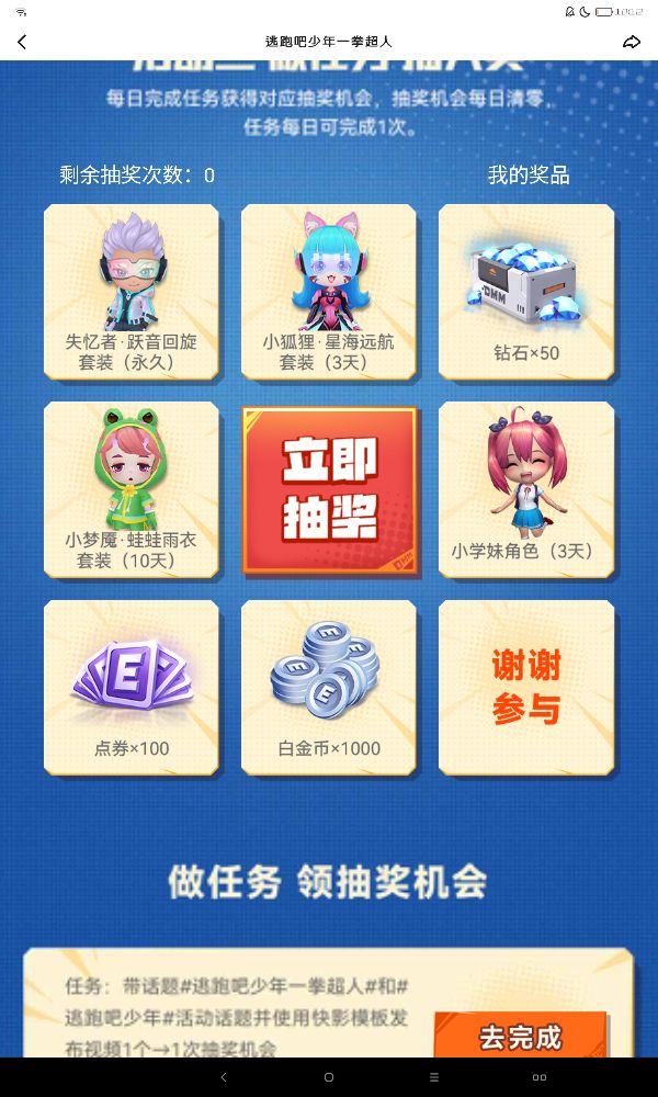 快手搜逃跑吧少年,官方的活动,还真抽中了