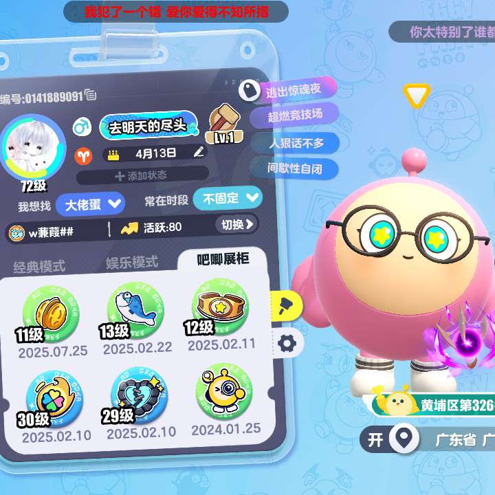 大家好~ 我叫去明天的尽头,这也是我的蛋仔名 有点实力但不多 感兴趣的可以加好友一起玩