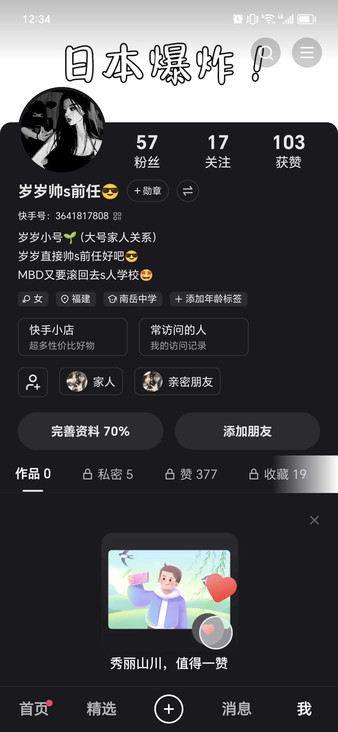 有人玩快手吗?加我,大小号都有😙