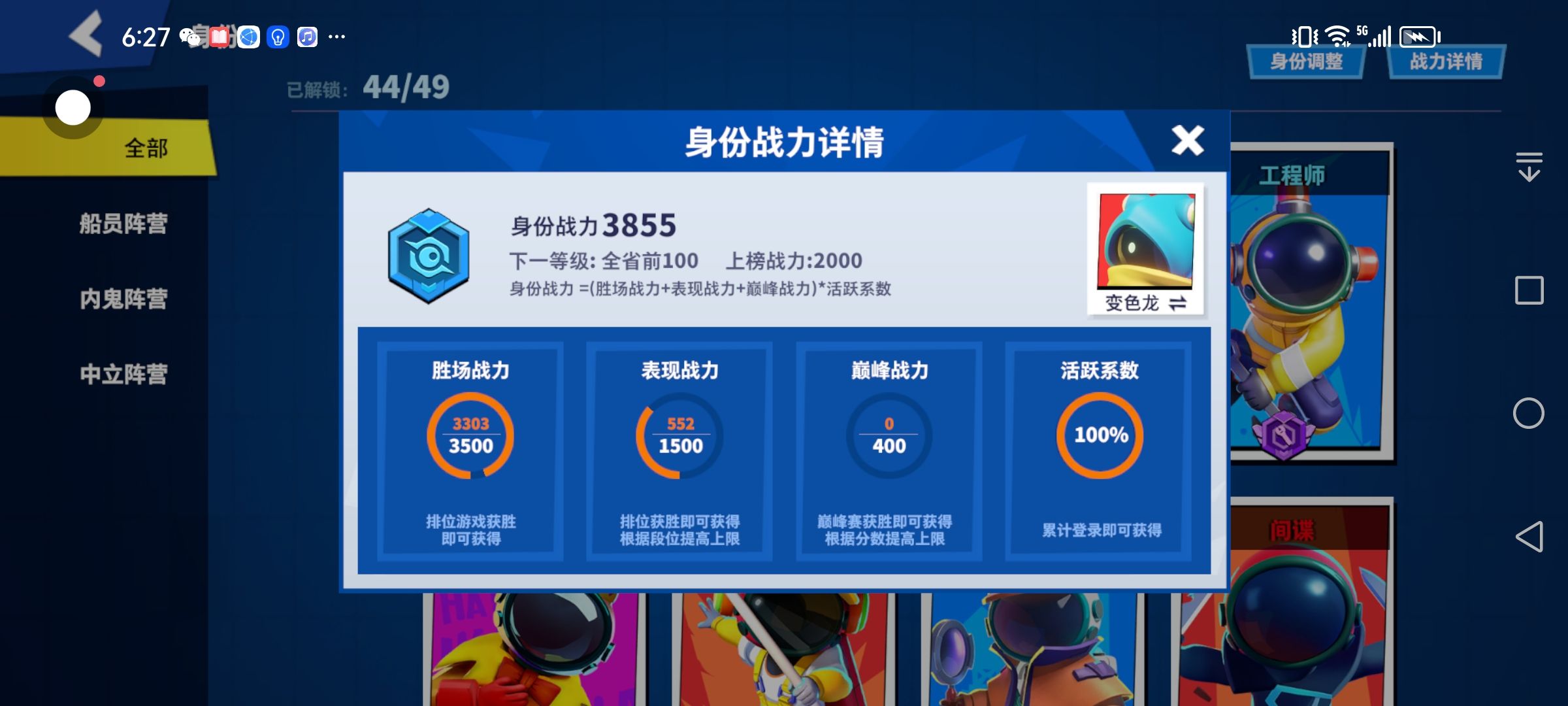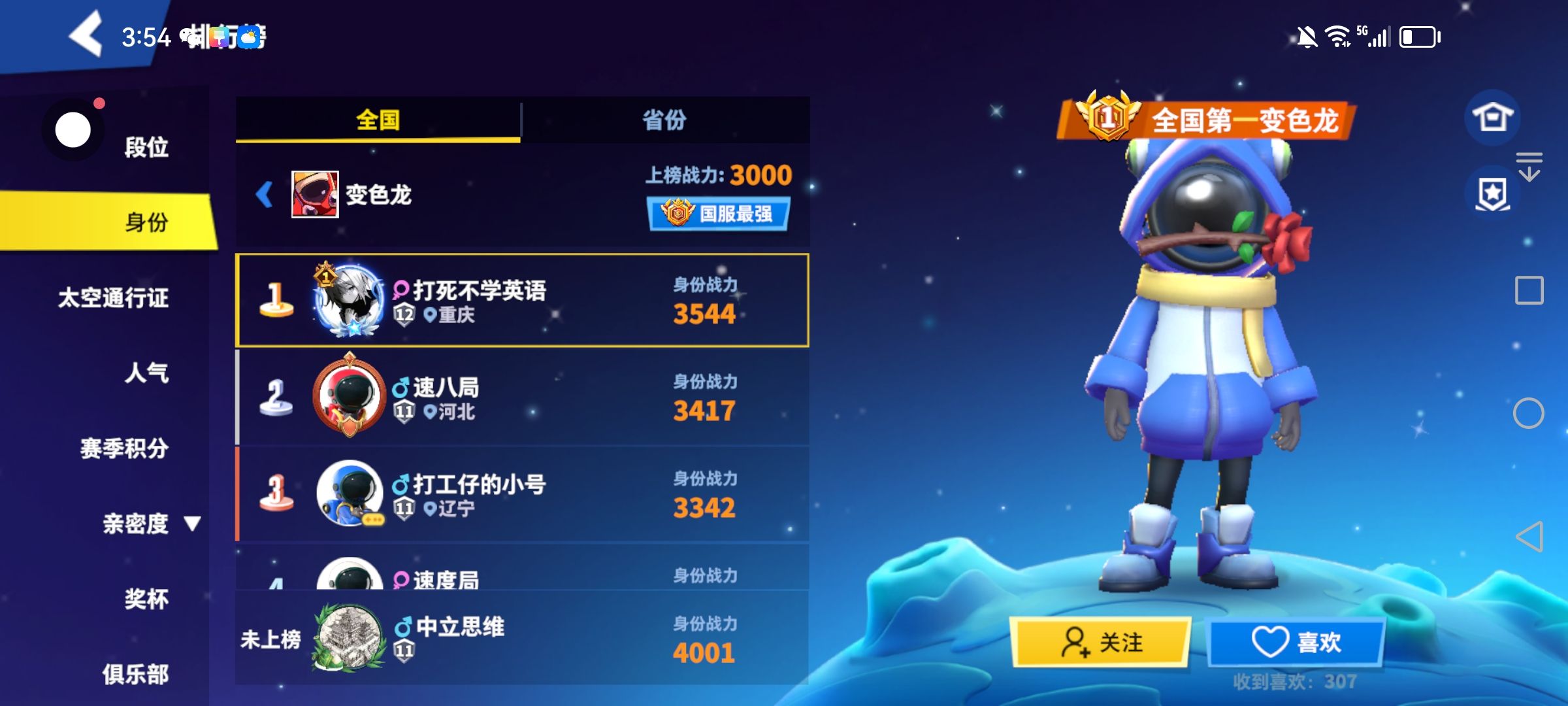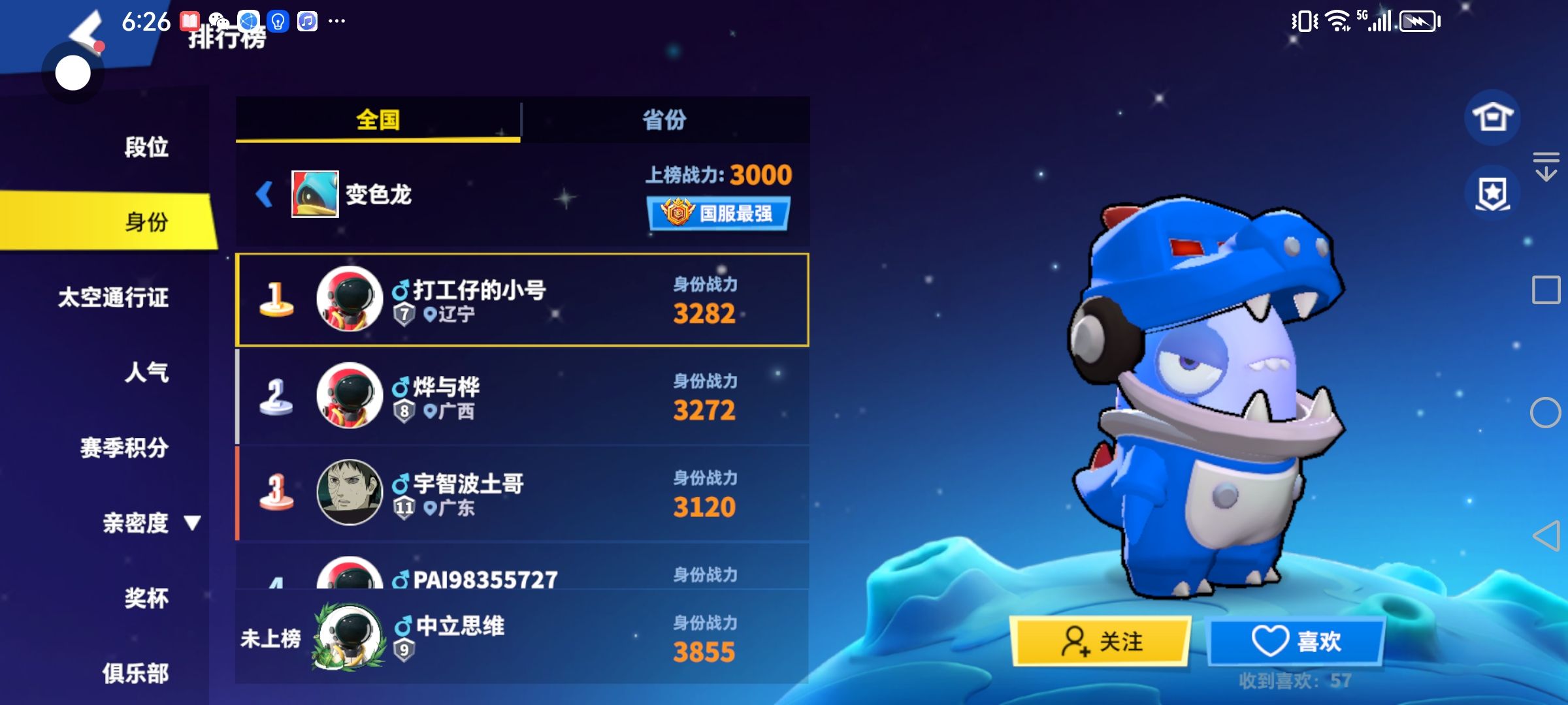 我变色龙战力三千八了在全内鬼榜差不多都前十了现在在变色龙排不到榜一我不理解求答