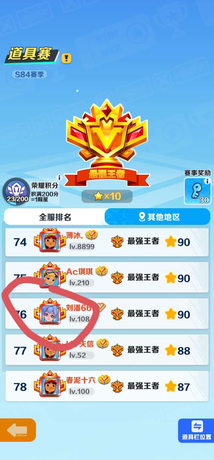我的好友竟然在全服第76名!@刘同学