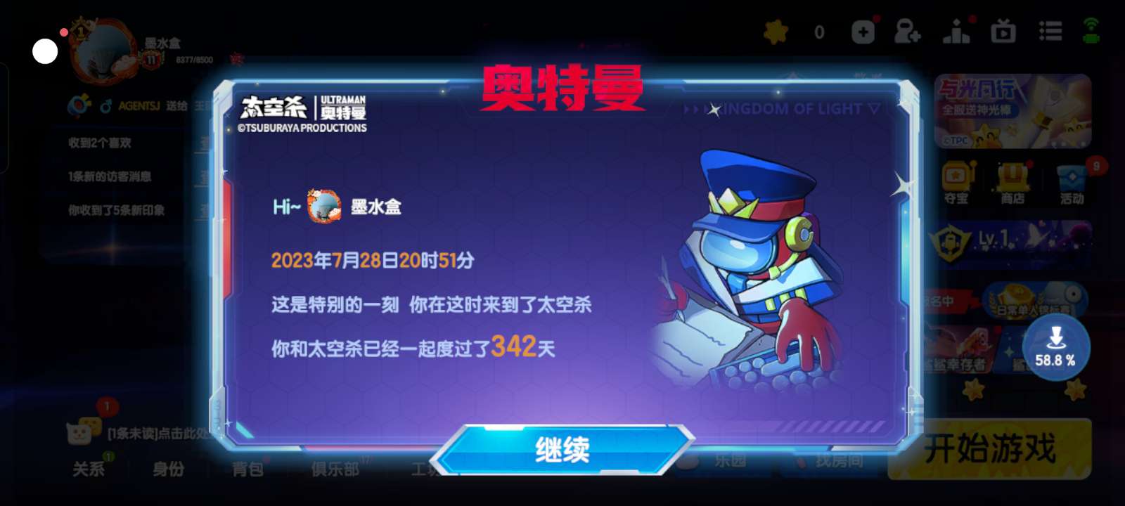 可以一起玩的,经常在线就行