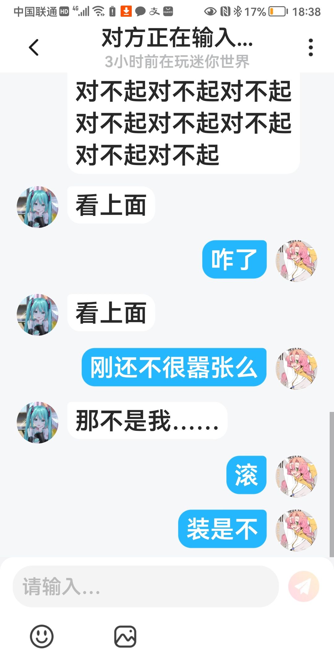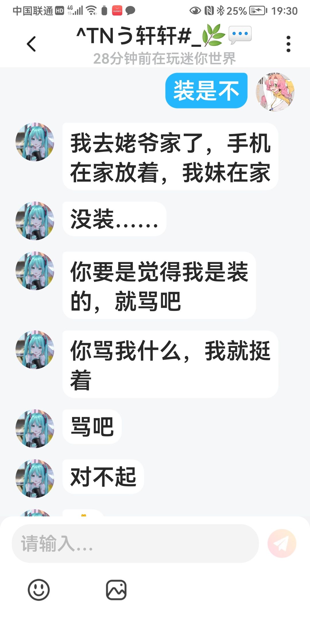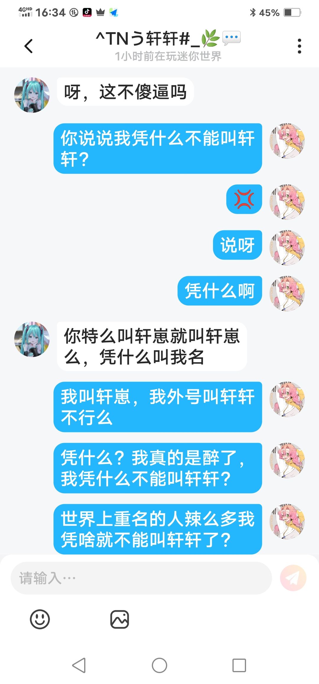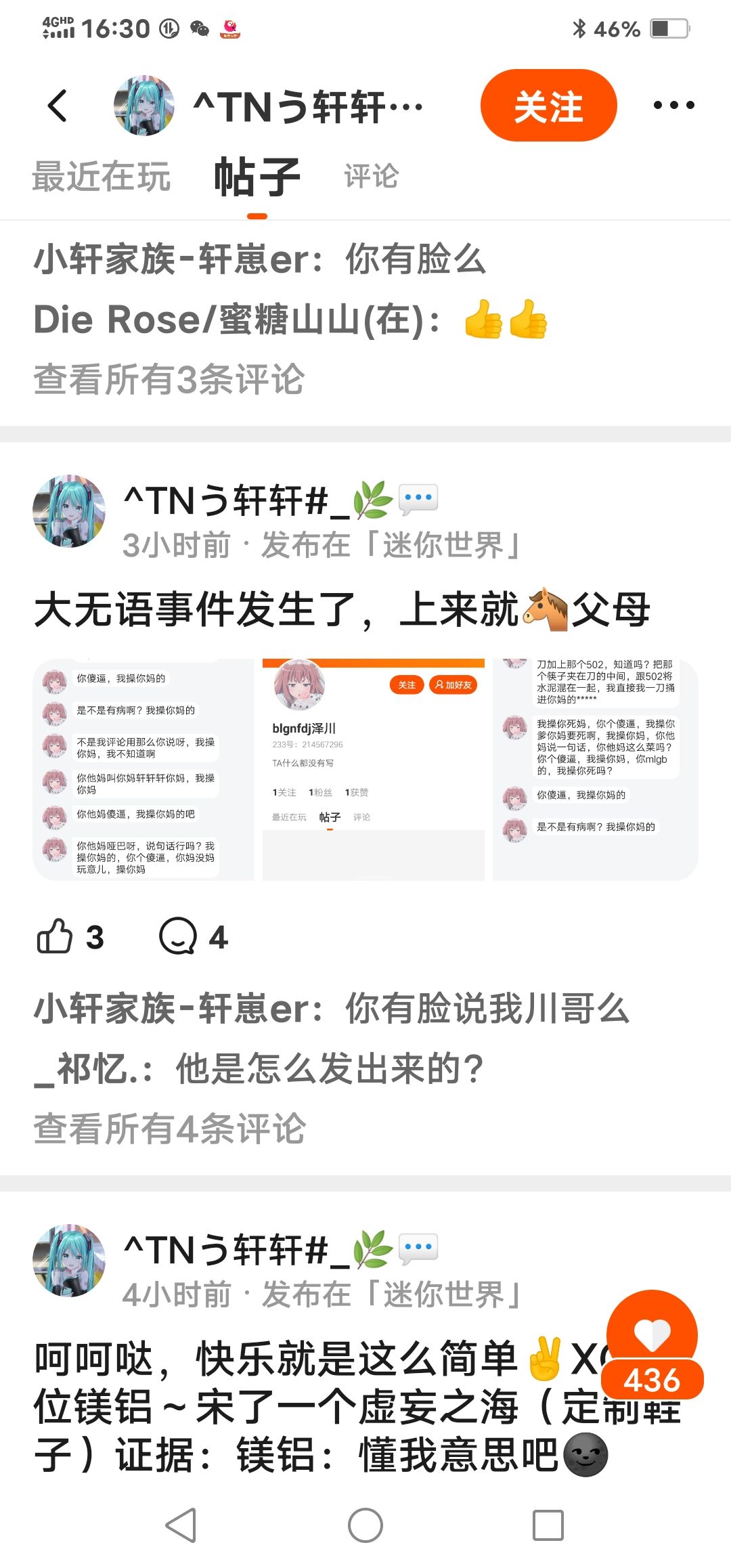 家银们我无语了哈,我大概说明一下这个人因为和我重名了骂我,骂完我给我道歉,本来我想原谅他的结果一看消息他又在圈子里骂我,还说是他妹妹玩手机,大无语啊家银们。。。如果想知道具体情况的看我其他帖子家银们🌚