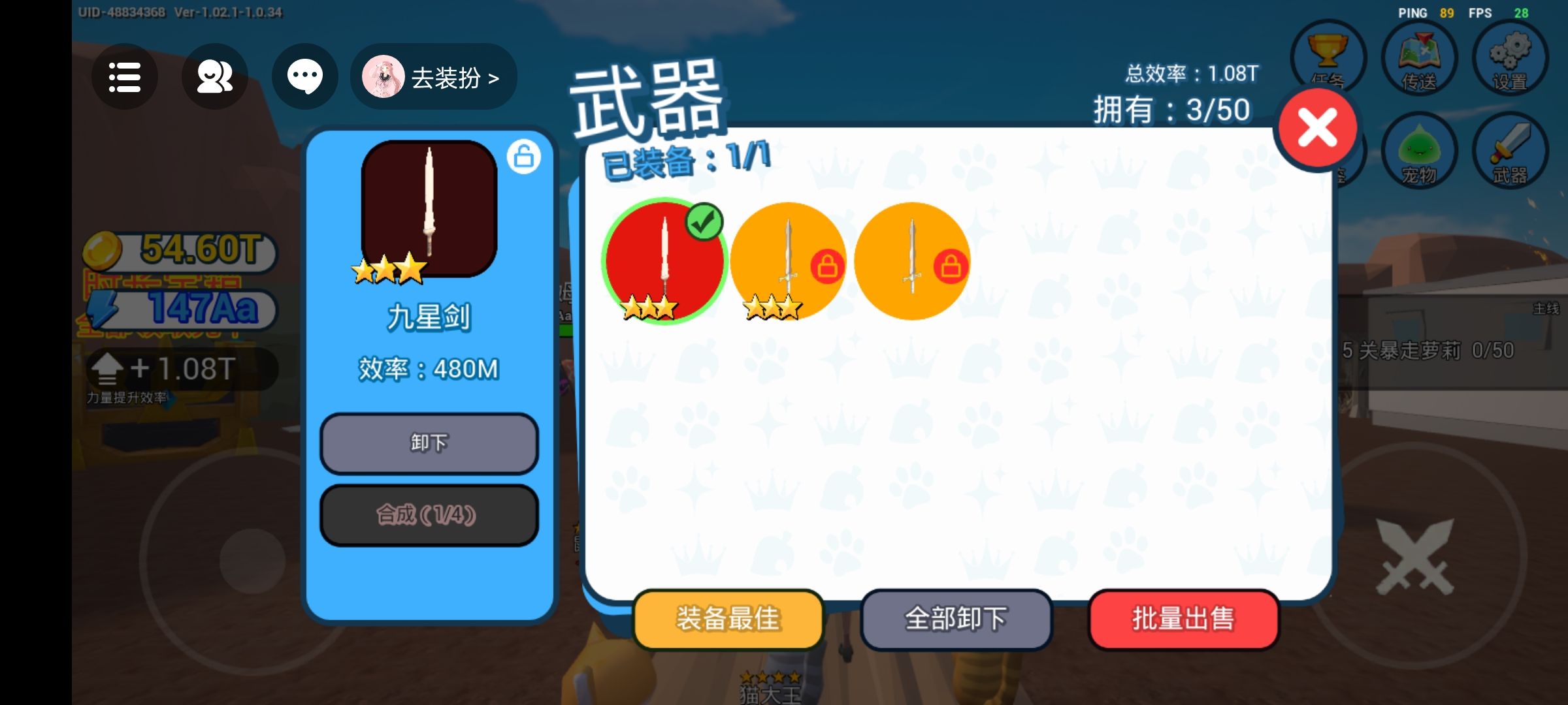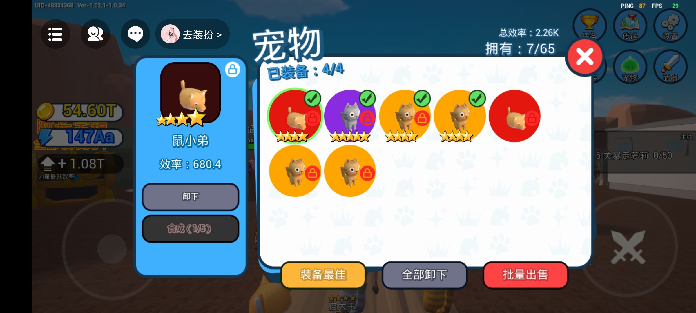 OK呀,战力也是来到了147AA了,加红武3和红宠4加两个黄宠4,成长战力1.08T