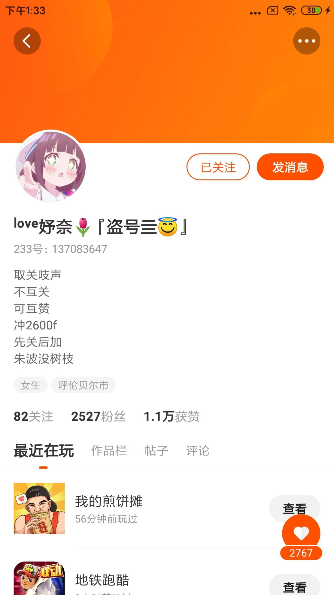 Hello,大家好,我也是一如既往的来官宣大号啦,是我的粉丝可以去关注一波哦