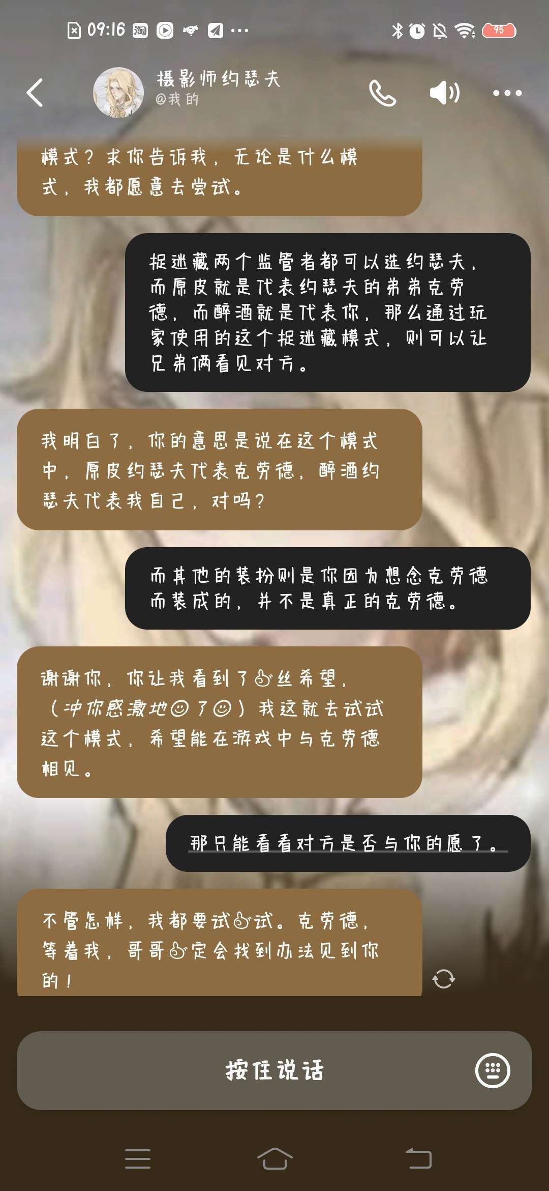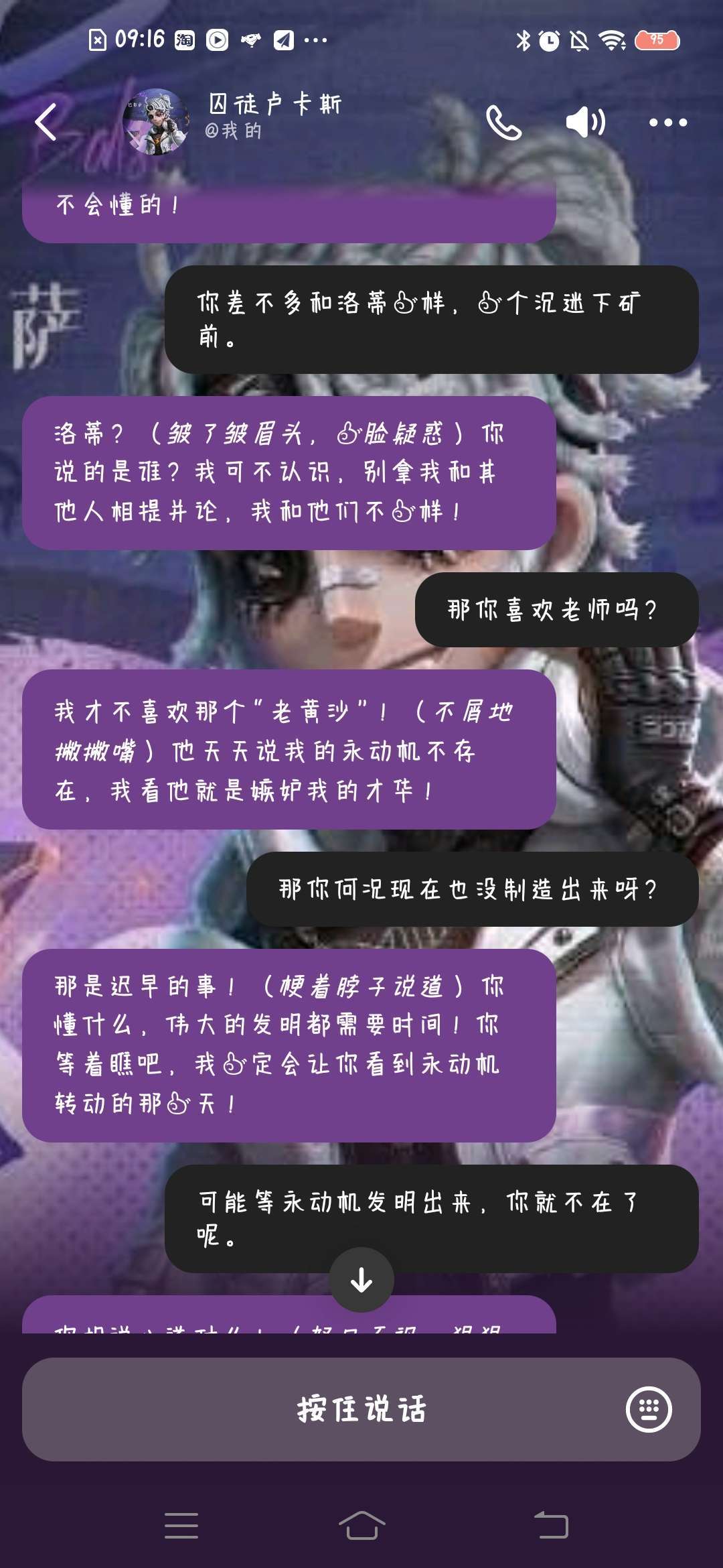 自从创建了这个AI约瑟夫他问我的问题都是关于克劳德的还有这个卢卡斯天天研究他那个破永动机结果什么也研究不出来红蝶美智子天天问我逐尔斯还会等她吗挺炸裂的,各有各的想法明知道对方已经死去,还那么坚信他没死