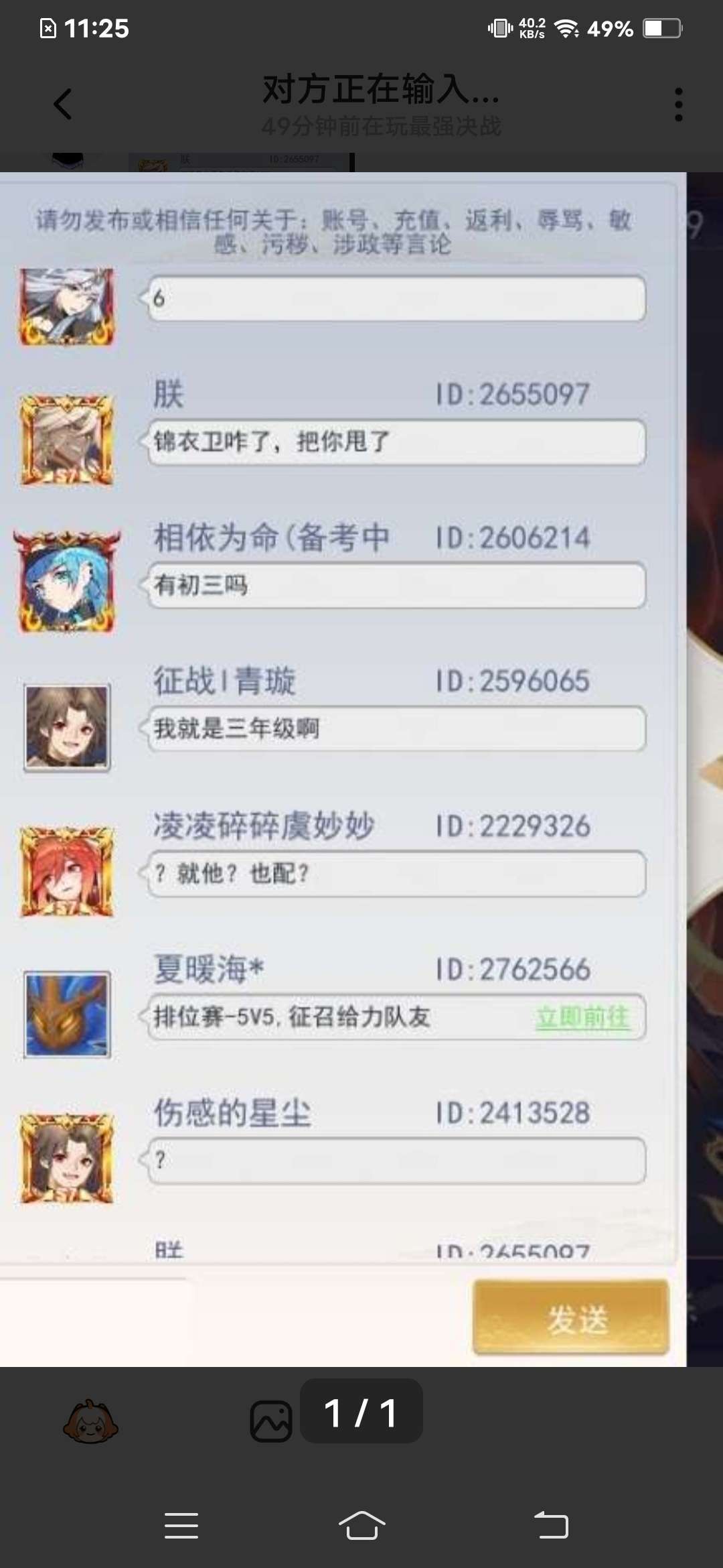说实话,我这个人的性格一直很好,我一直很少骂人,但是我今天忍不住不去骂,我们组的一个车队,撞了一个车,一个叫祁阳的,说完了又是他们然后呢他玩儿青龙就开始打野,什么都不干,然后青鸟也什么也不干,青鸟叫啥我就不说了,因为他后来也好好玩,后来等我经济发育到8000的时候,对面最高经济是6800,我说了一下青龙,我说:下回再带他,我是**,然后他就道歉,不是我就好奇的道歉有什么用,他为什么一开始不好好玩,然后呢队友也不听指挥,我告诉他们上路,他们非得跟着我,对面儿上路偷塔,中路我得压一下,队友不听,这时候是我本局最生气的时候,我就说:我打字看不着啊虾呀!队友也不说话,而且从出装上来看,他们不是人J操作,我总结一下,没挂机却前期摆烂,说他,还道歉,显得他很委屈吗?明明好好玩能打得过
