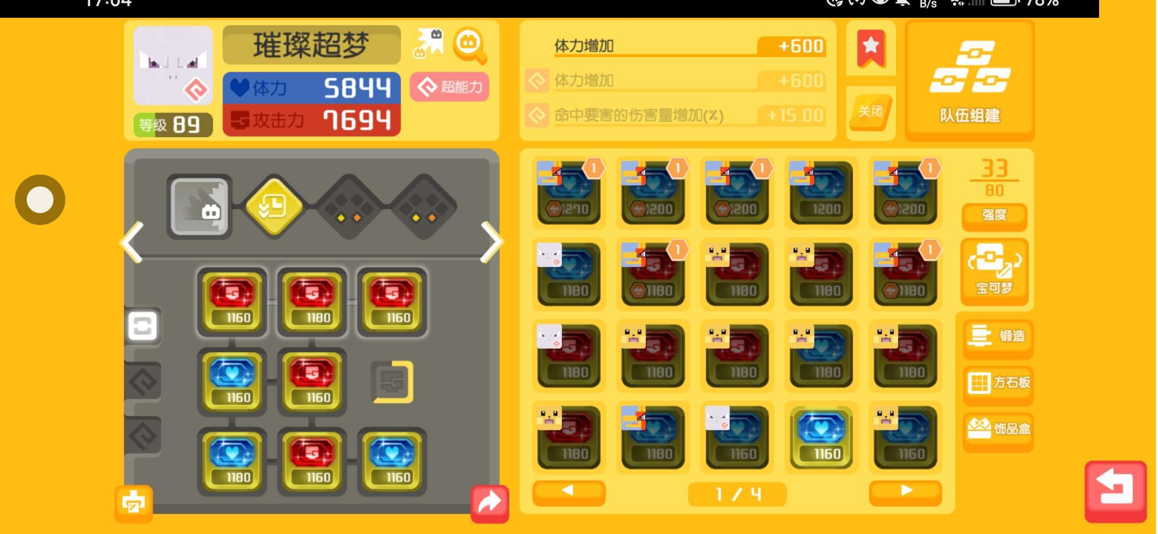 这是我所有的食材,还有我的宝可梦,战力45000,我在考虑要不要抽超梦