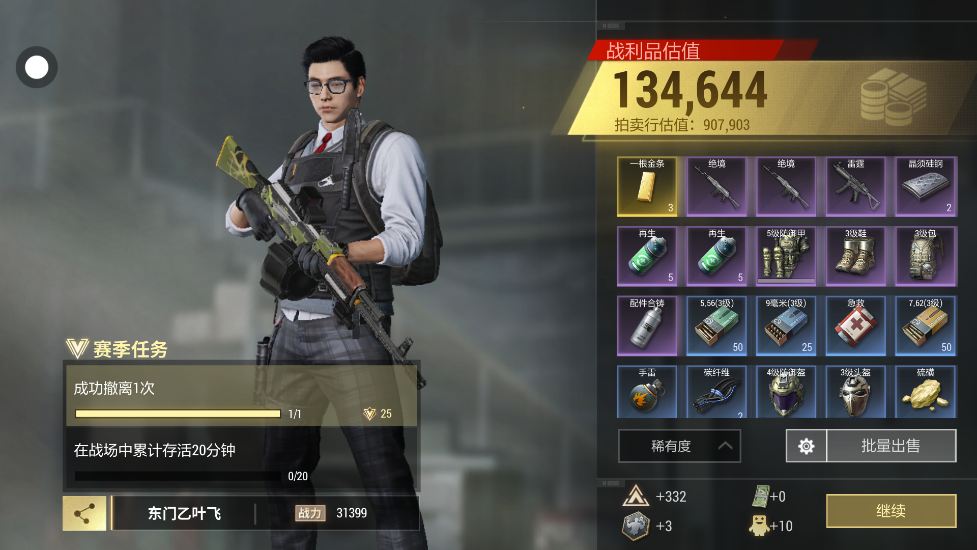 当狙仔小赚4万。 爽