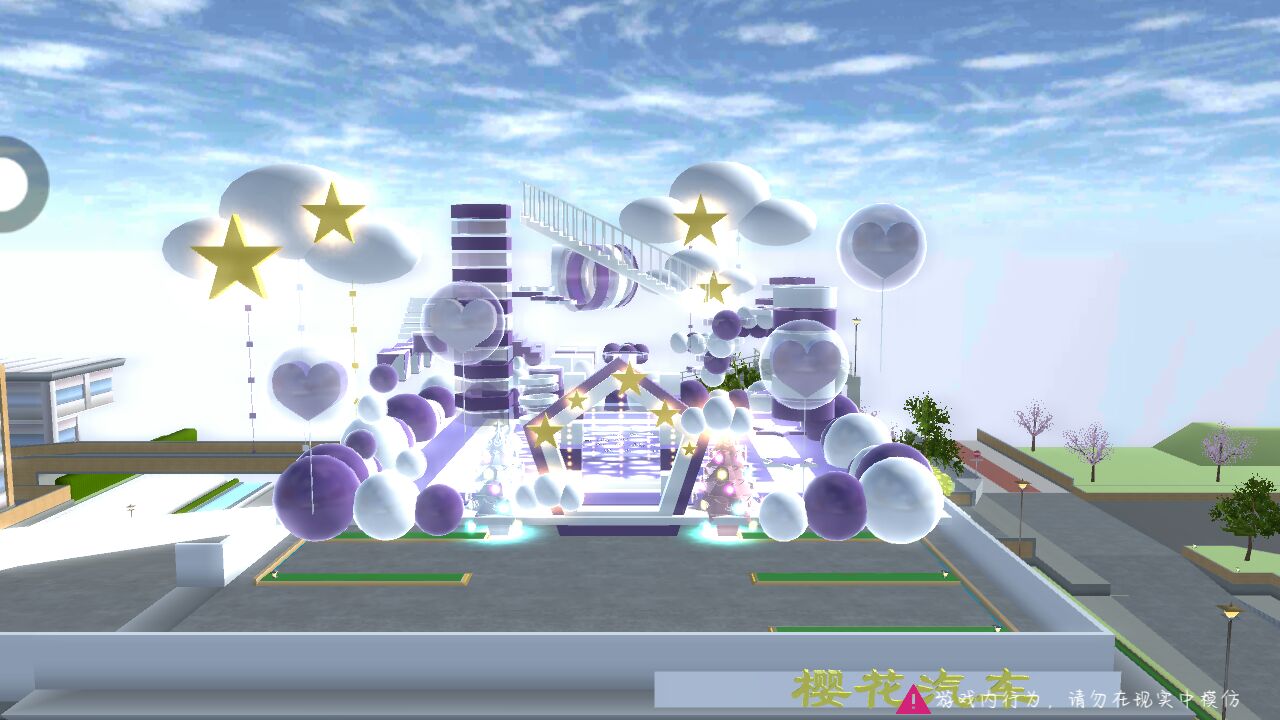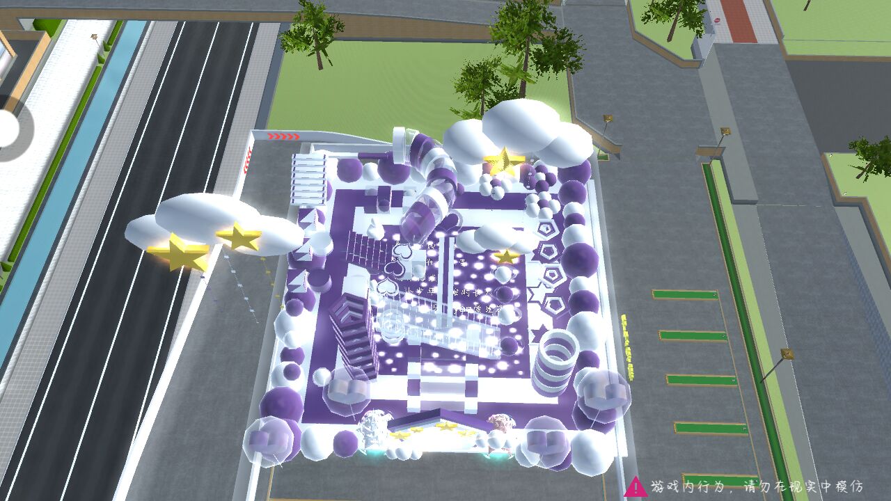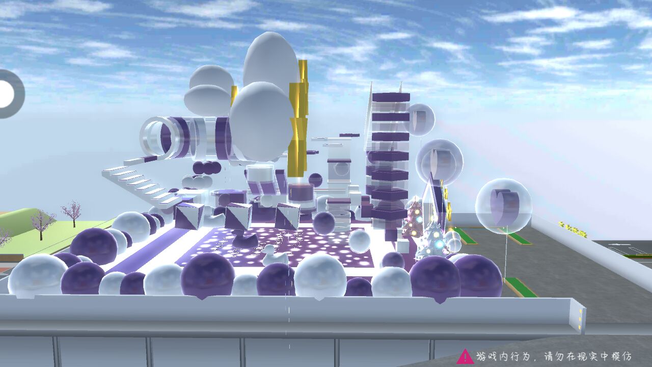 这个跑酷是紫色和白色,有小云朵和气球都很好看