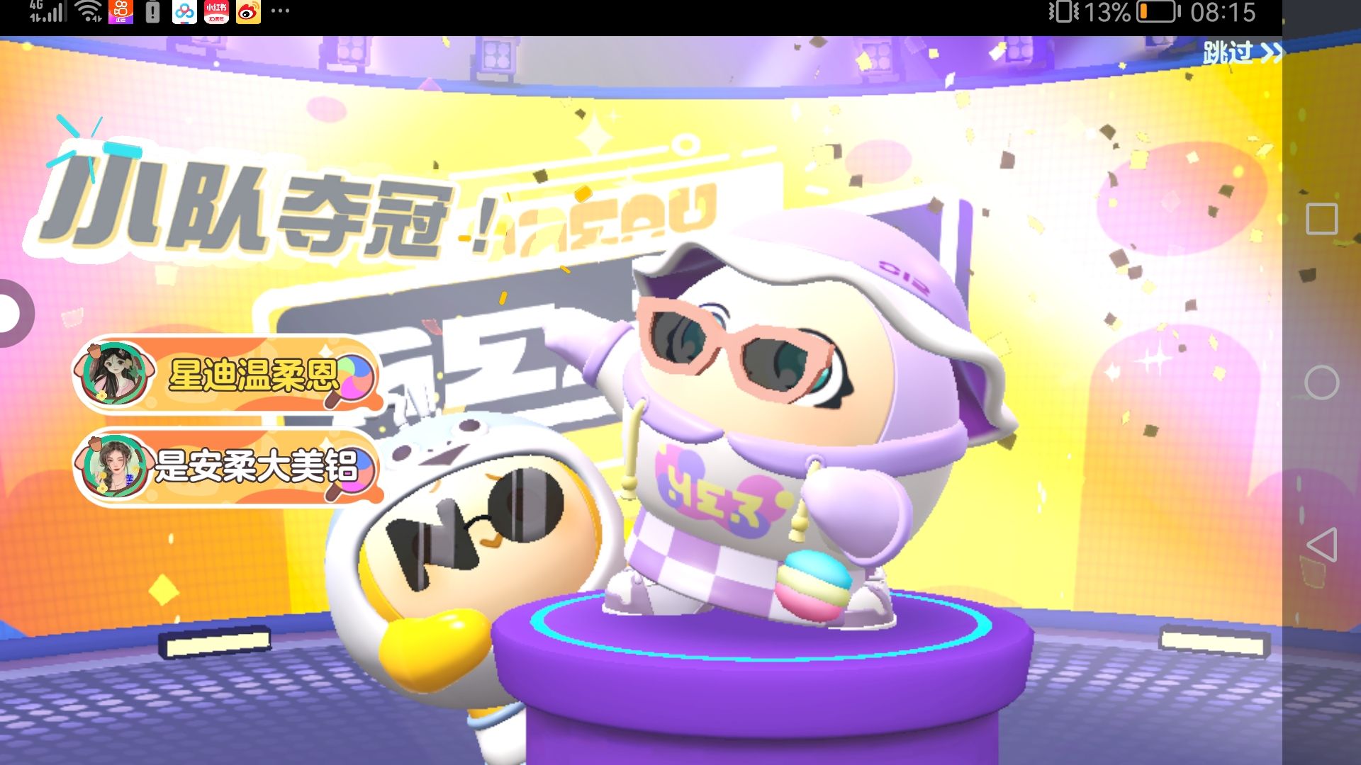 夺冠啦,太开心啦😃,可以加好友,第一个站在台子上的是我
