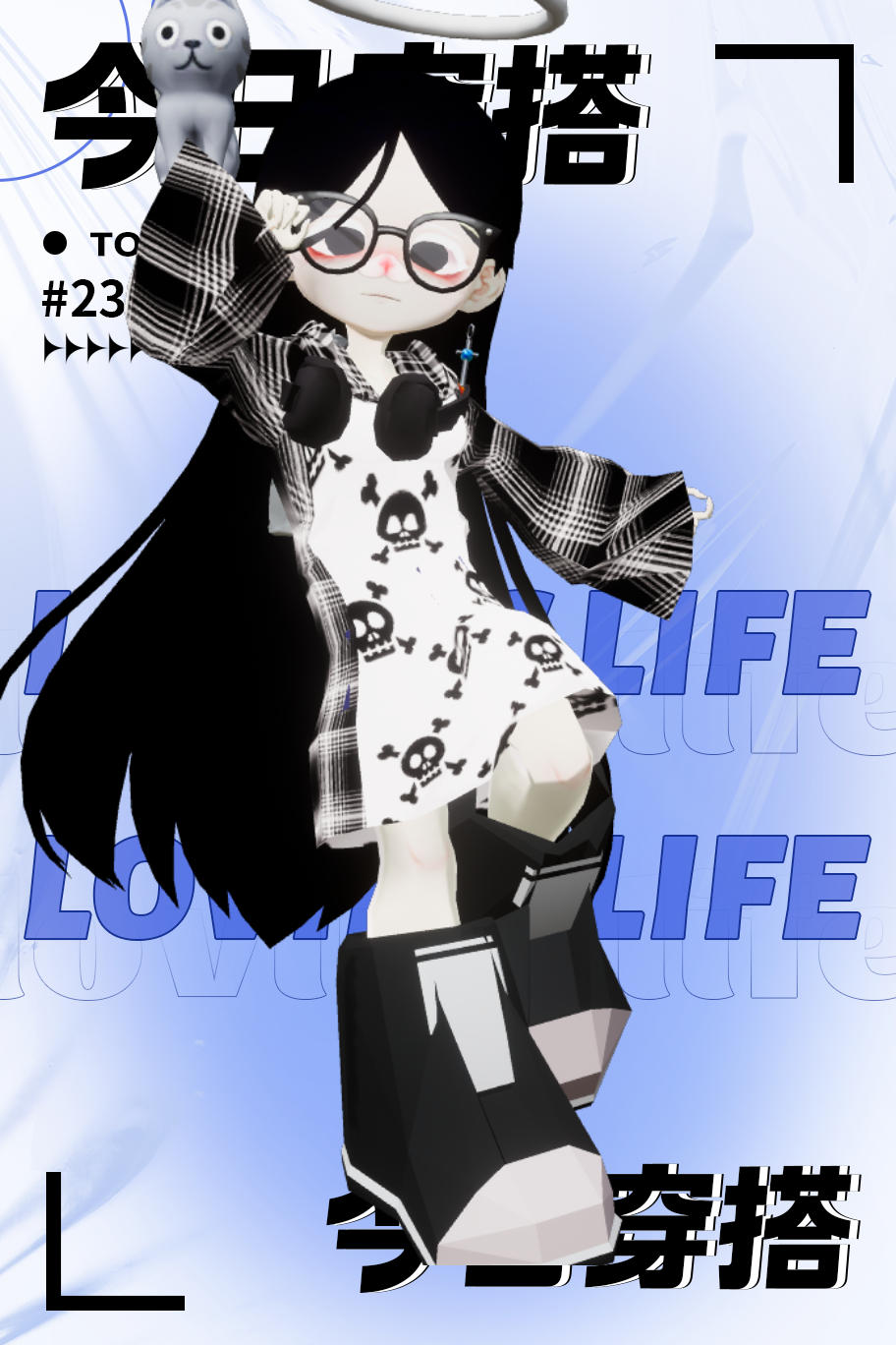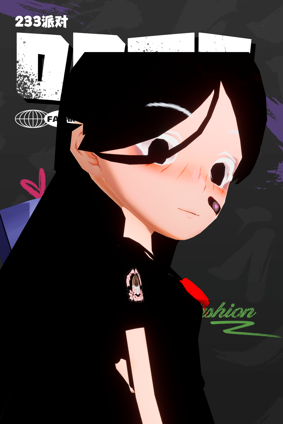 我自己能的头发和上衣裤子都是黑的