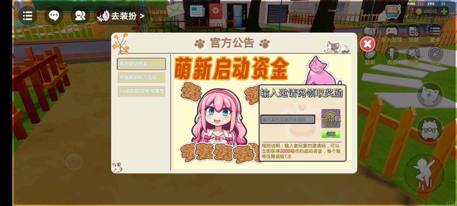 输入邀请码:44589410~就可以领得2000喵币哟-😎