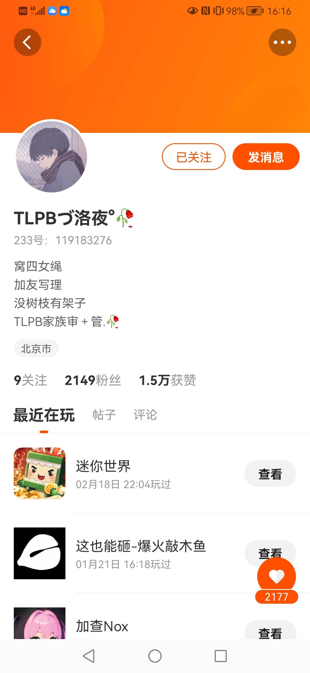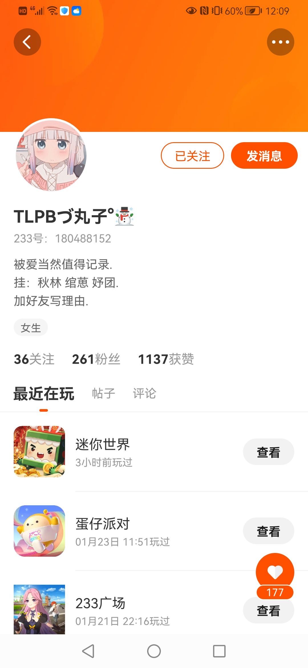 送了我一个233号