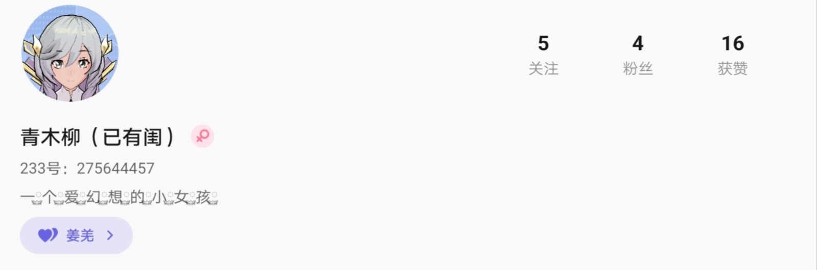 闺:桉妤,青木柳,沈年。姐妹:星月,欣怡。贝:夏涵。徒:苒希