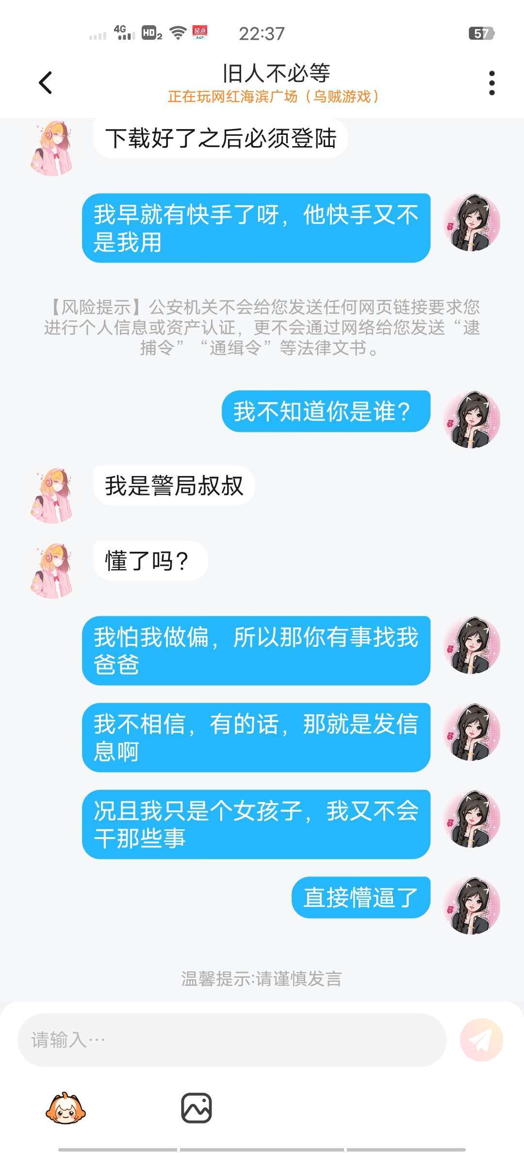 后面我问他啥,他就不回我,还玩游戏,我问他为什么玩游戏,他不回我,真不遇到了,还说我欠了多少多少钱,我不知道他是警察还是谁?问他反正就不回信息૮₍ɵ̷﹏ɵ̷̥̥᷅₎ა