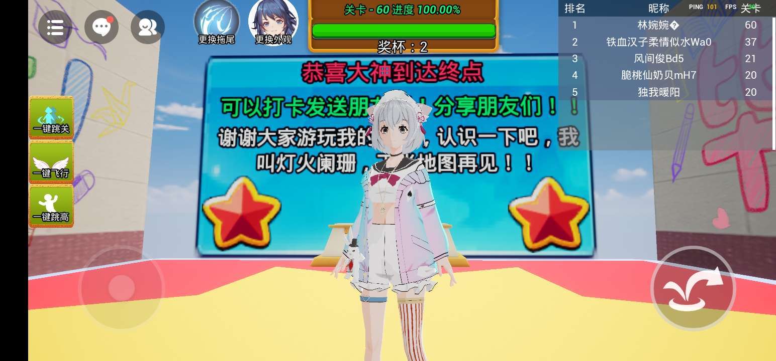 原来60关是过关,我其实是第4名的,一个人是第1名,我就一下子蹦到了他前面就来到了36关就赢了🤣