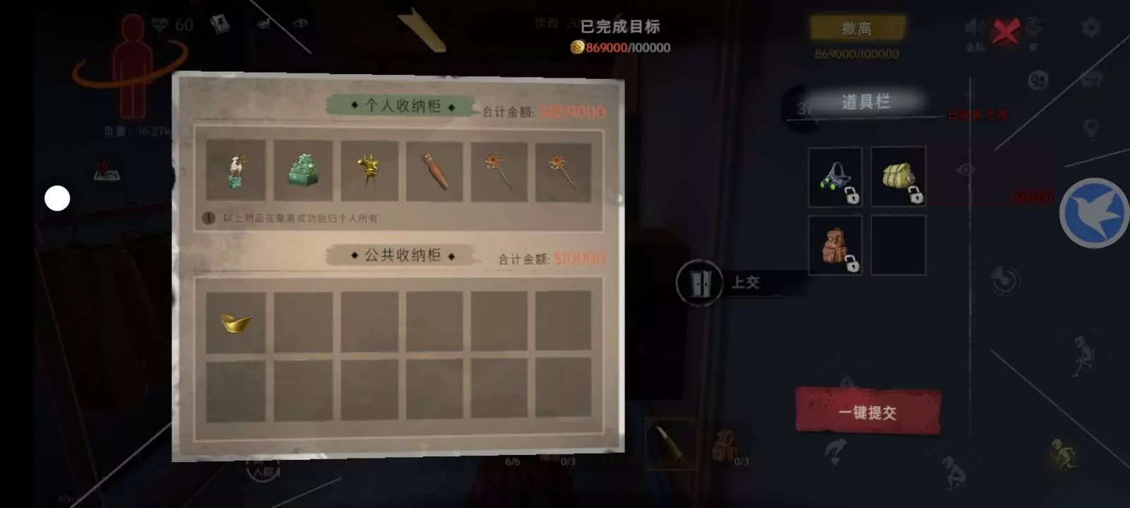 本菜鸡只带一个背包开完全棺就一个金樽,带俩背包还少开一棺就双金撤离是吧?