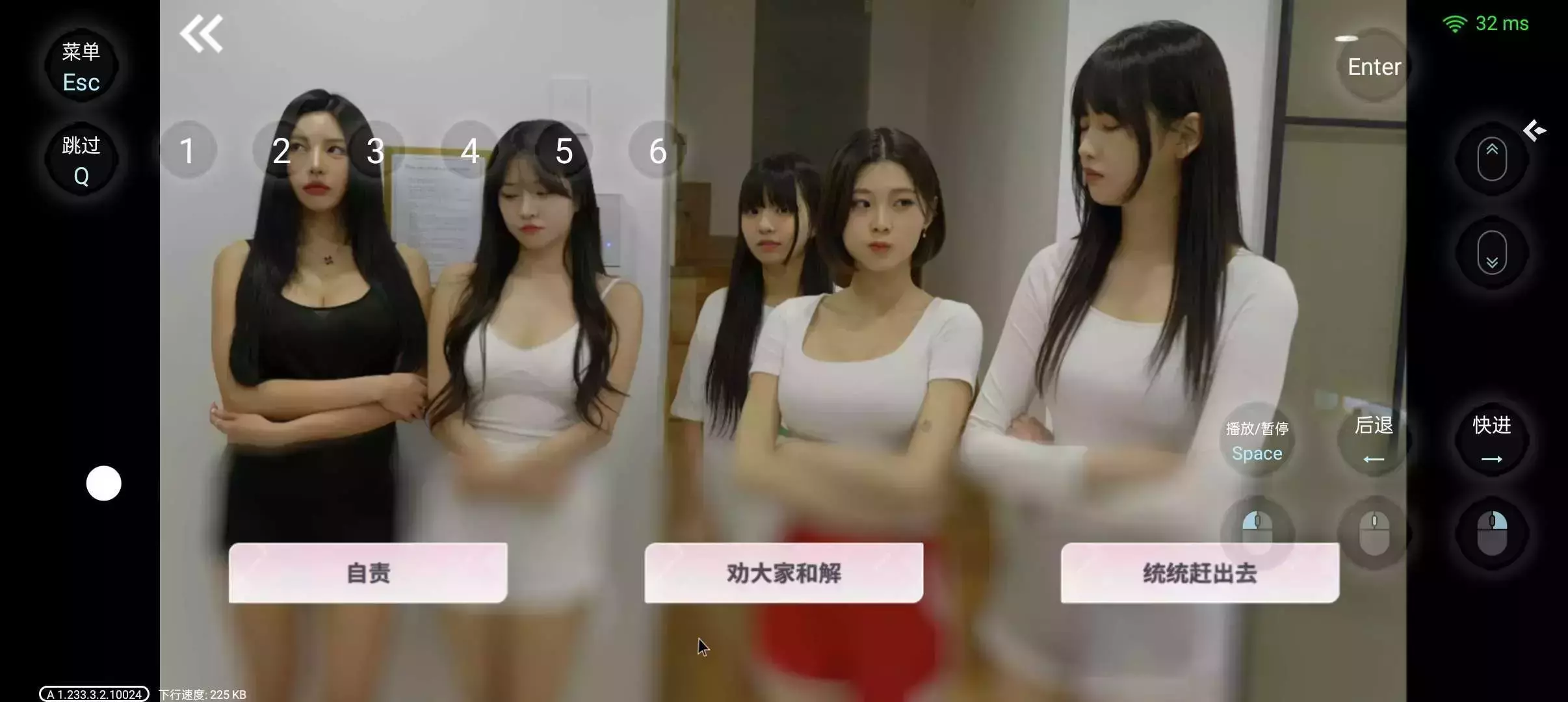 千万不能点击左右两个按钮!不然她们会不喜欢你了,左边的那个你点了她,她们就会离开房间,右边的那个她们会让你离开,只点中间的,本人试过,不要跟本人学,不然你也会跟我一样,也是失败⚠️,为了减少这个问题,千万不要跟本人学!