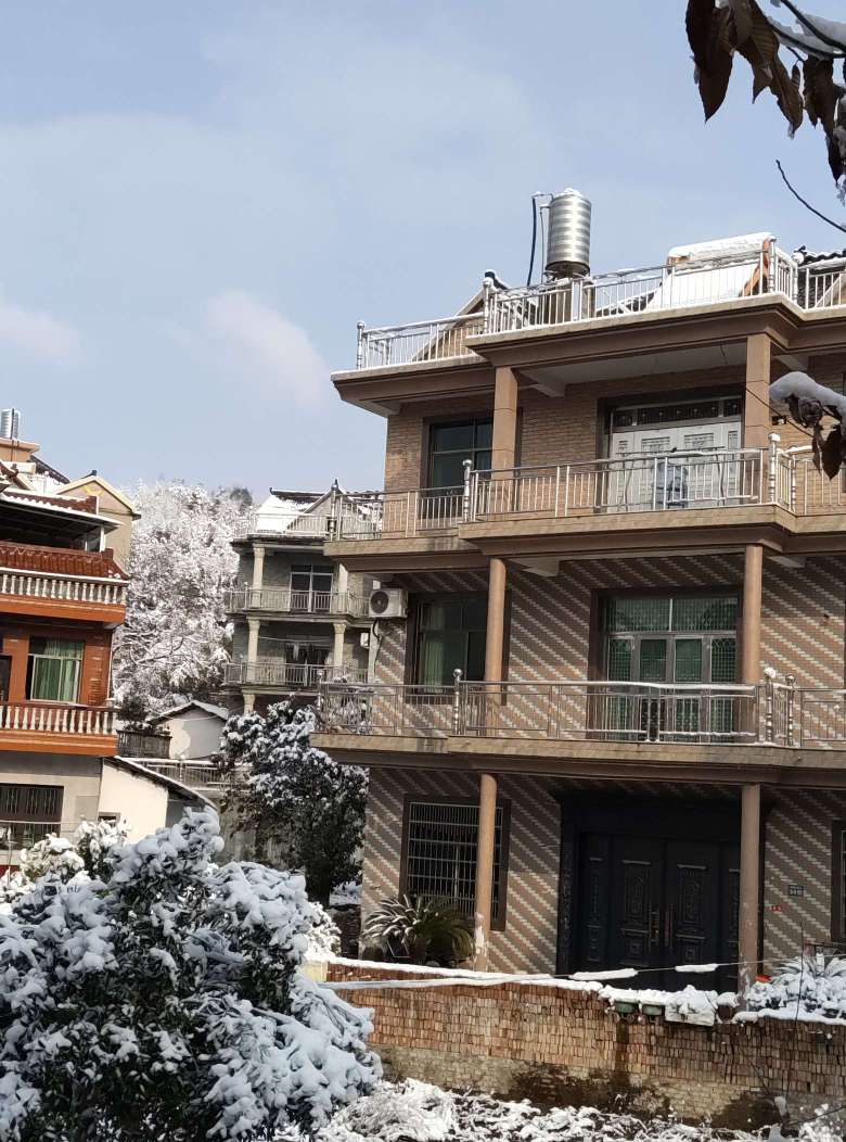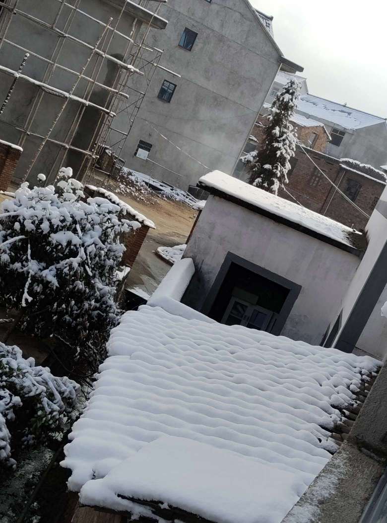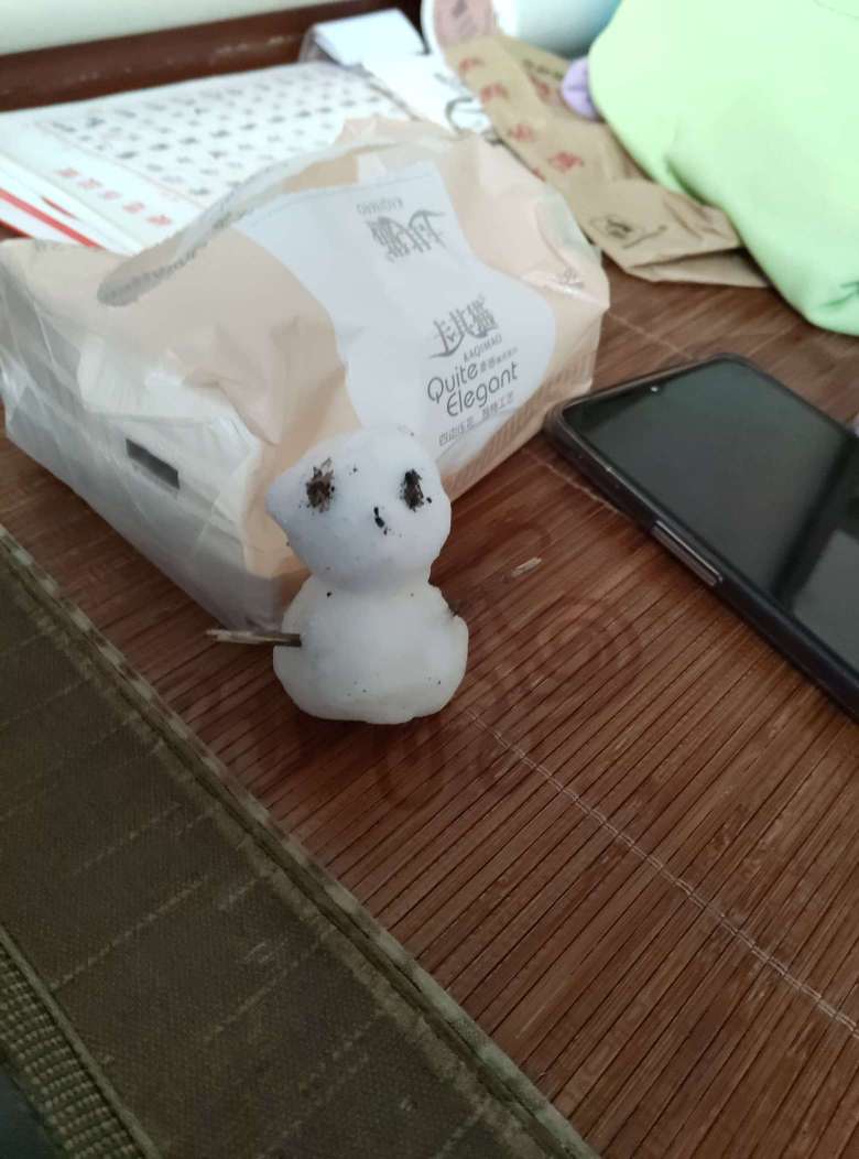 外面下了好大的雪,我堆了一个小雪人。