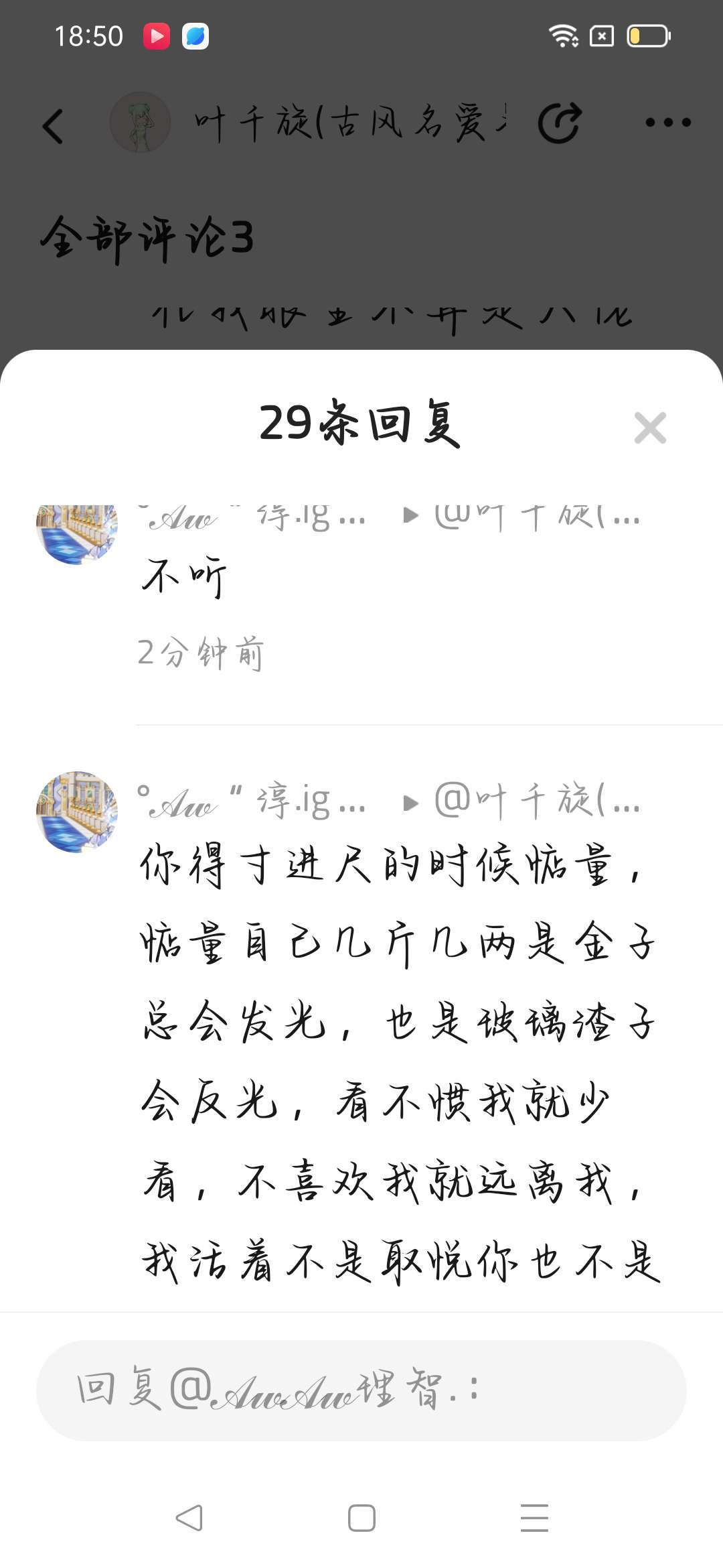 管好自己的嘴,我惹你了吗 ,怎么 ,长大你拿你几万多粉的号给人家看一下 你就可以当老板了 是不是?友谊是拿粉丝比的?也不看看自己心多黑,粉丝也是互来的吧,自己让我发证据 他也不发 ,真的是受不住 ,是是是 我👎行了吧?我做错什么了 你来说说,你还厉害上了 是吧?同样都是一个社会的人 日本人 是吧?没准你叫什么罪 ,自己粉丝多很来 是吧?我不听我不听 已经是一年级的小孩玩的梗了,是是是 你没满18 你有儿童保护法