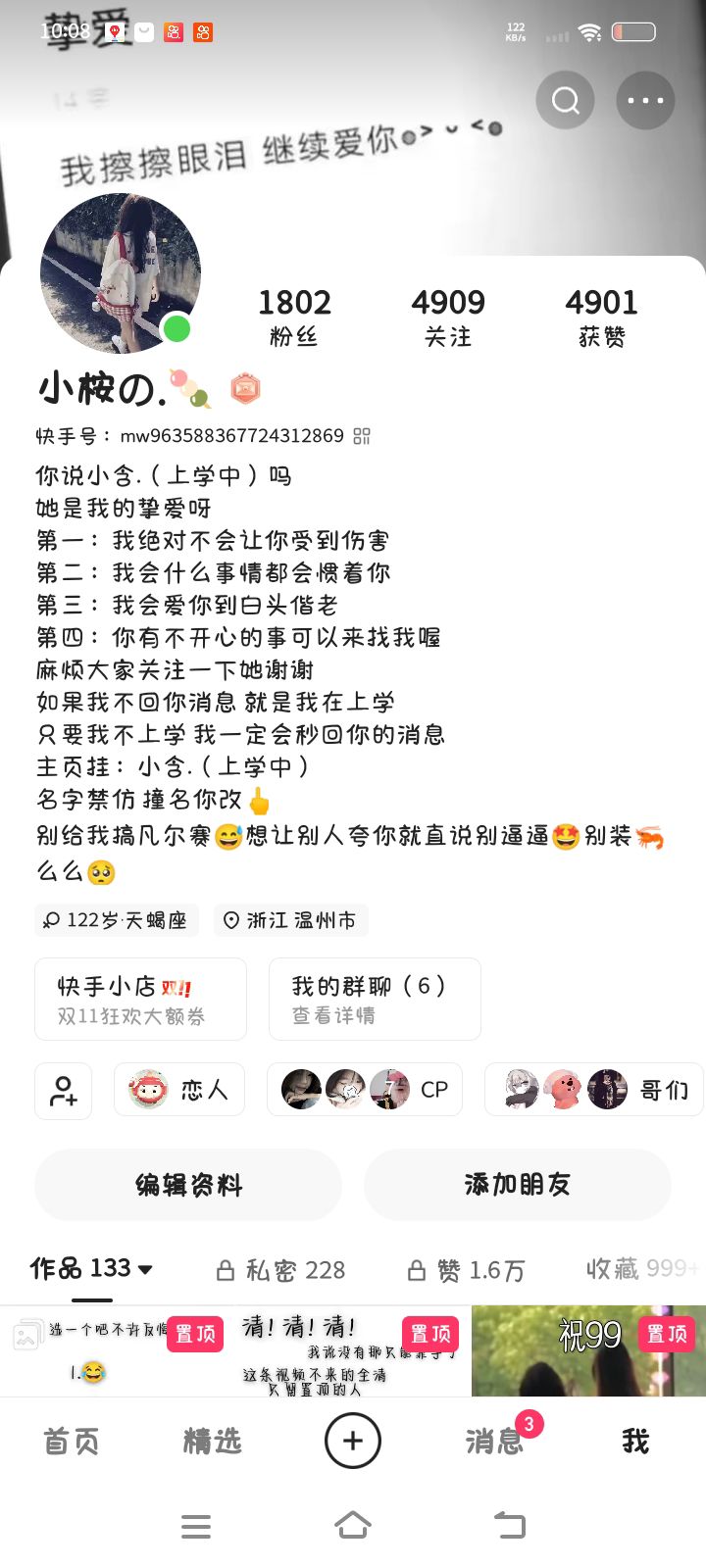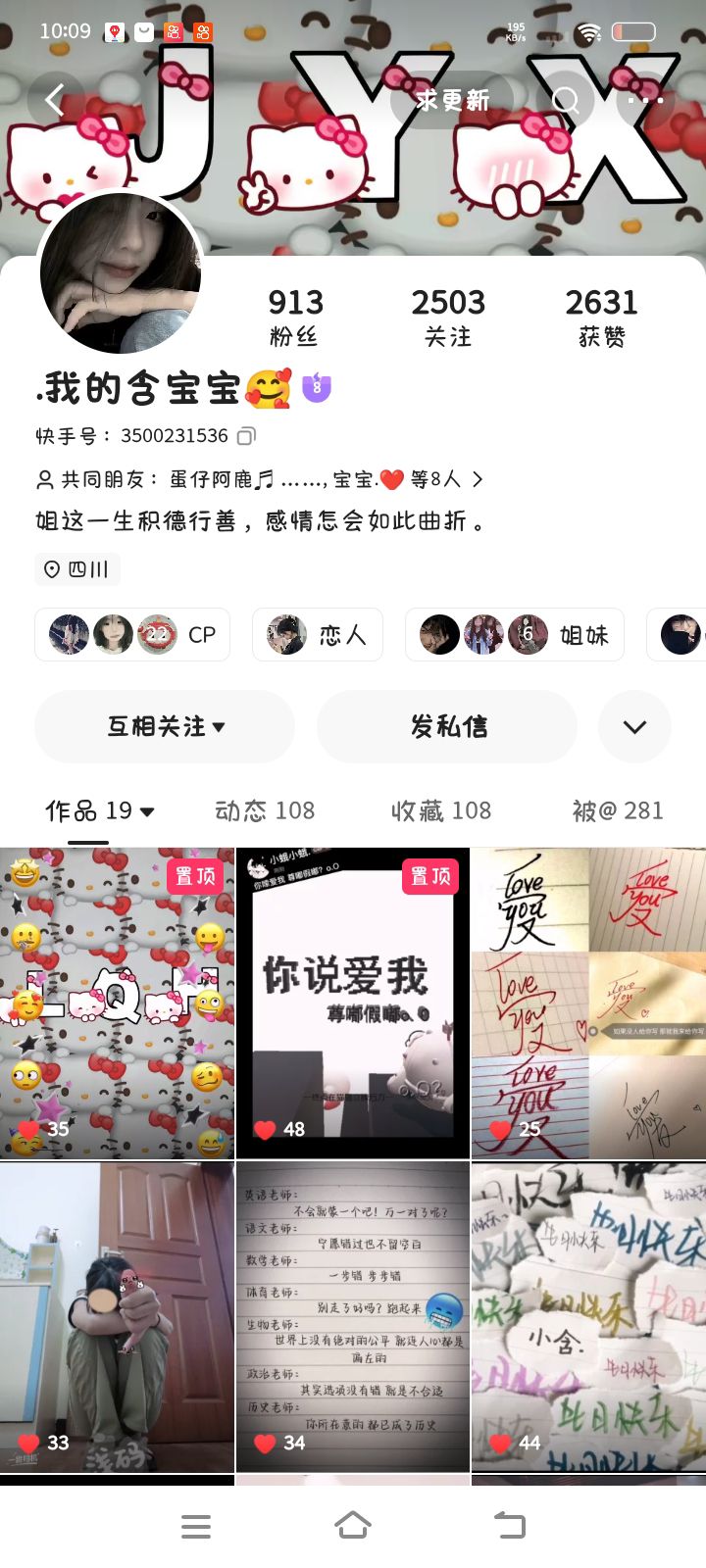 嘿嘿嘿 我快手上的闺蜜😆 8级cp关系 6级恋人关系 恋人是我闺蜜小号 cp是我闺蜜大号