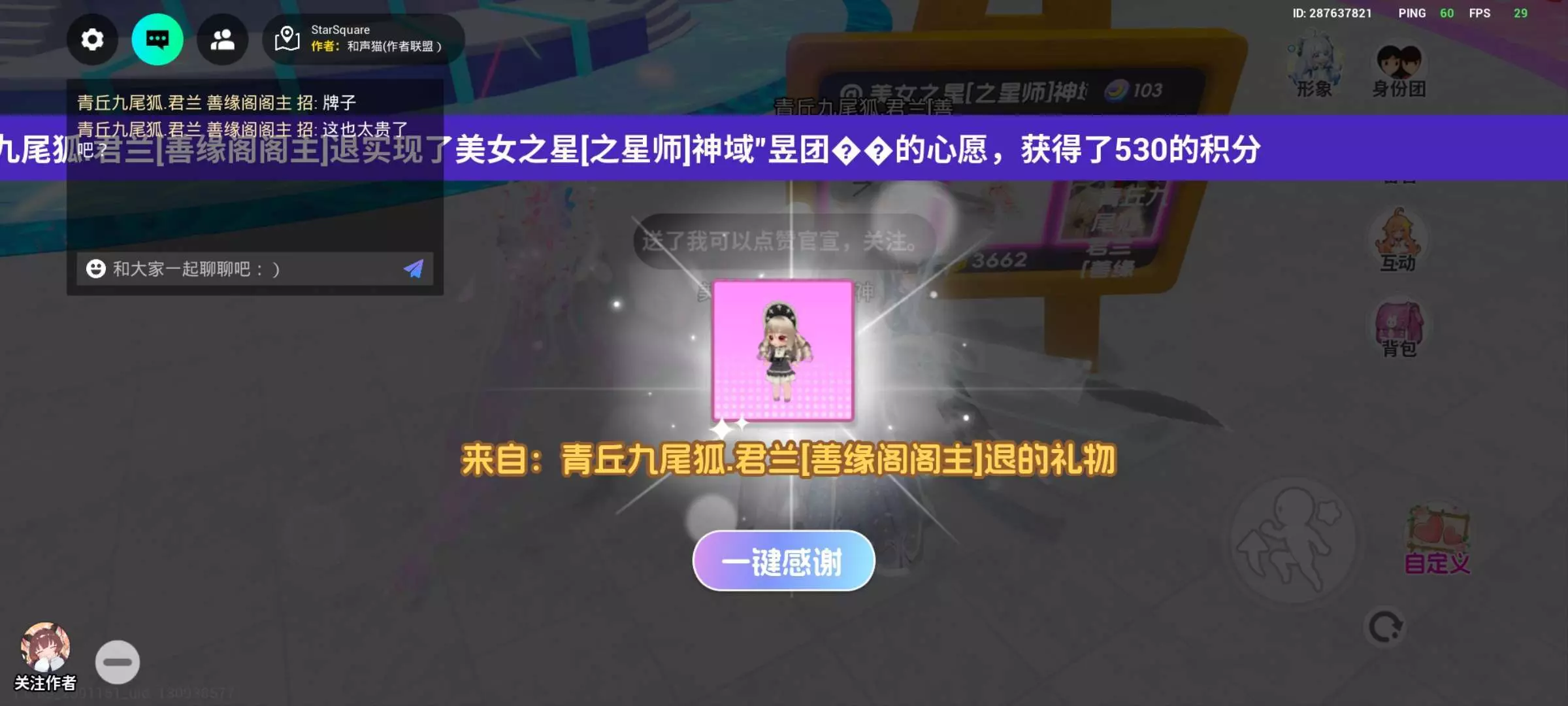 其实就是我觉得那个尾巴不用送,因为它已经送过我一个699的了。所以呢我给他说了。我比较喜欢那个人,因为我真的很喜欢这个大佬也送了我,谢谢大佬。