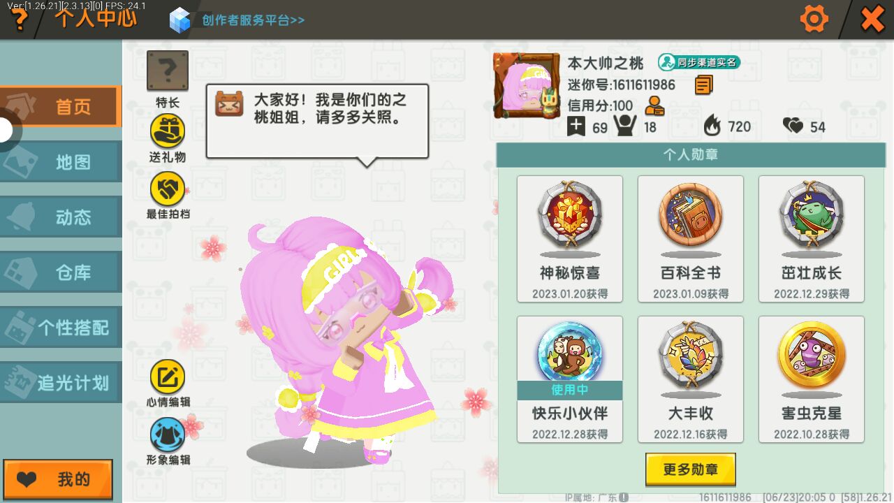 我真的会谢好吗,所以我最近玩心舞。迷你世界玩了87小时,心舞玩了一小时。