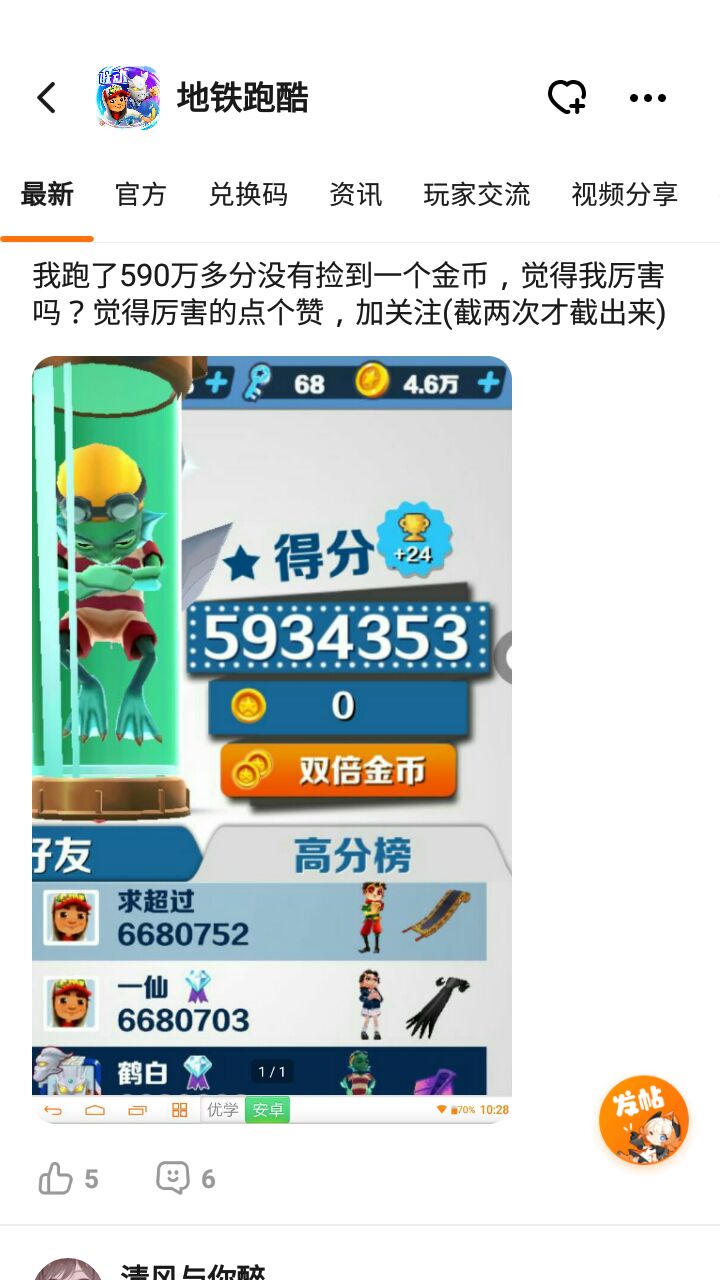 我跑了590万多分没有捡到一个金币,觉得我厉害吗?有得厉害的请点一个小心心,加关注。